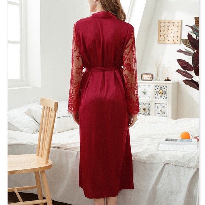 Áo choàng dài chất liệu lụa mềm mịn tay dài phối ren kiểu dáng sang trọng mang lại cho bạn vẻ đẹp quý phái tự tin khi mặc.