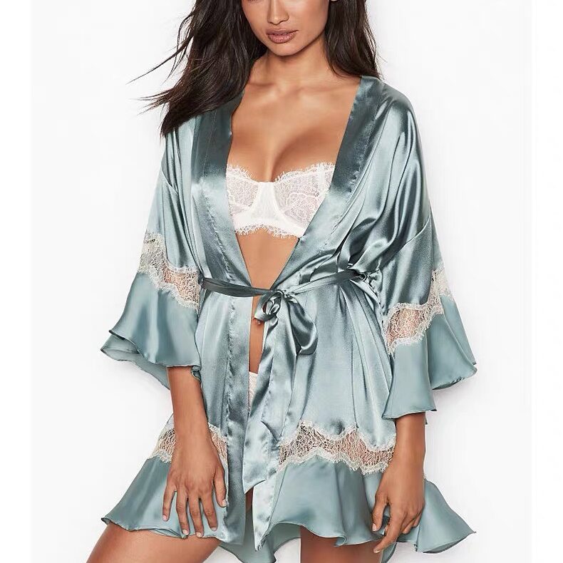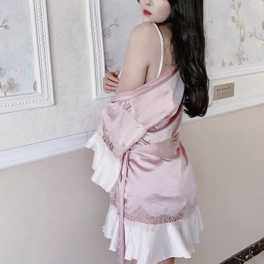 Áo choàng kiểu dáng tay bèo phi lụa phối ren cực sang trọng mang đến cho bạn sự thoải mái và sự quyến rũ khó cưỡng. Màu: hồng, xanh.