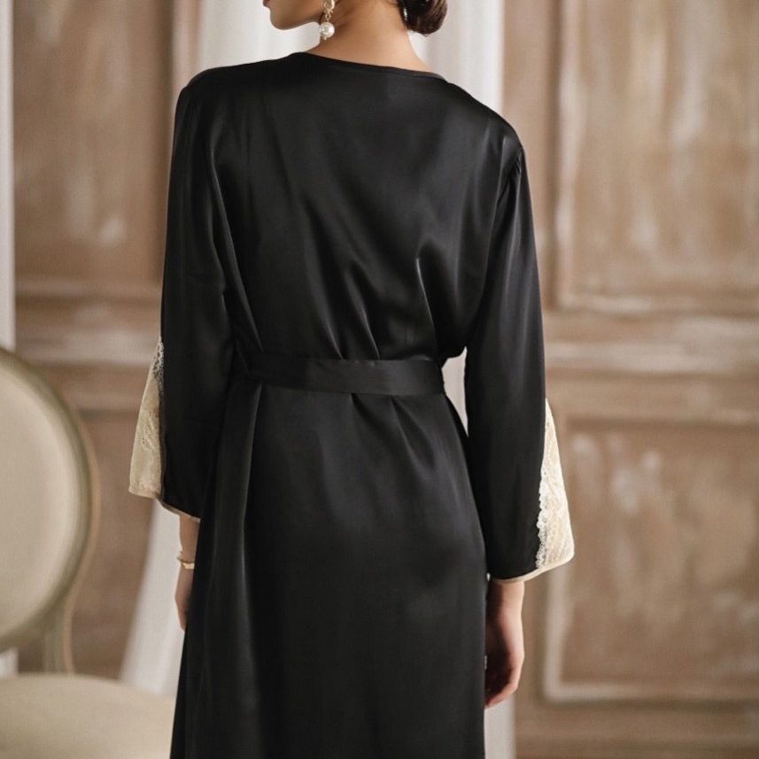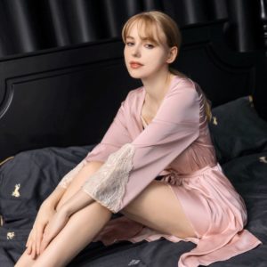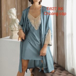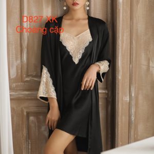 Chất liệu lụa mềm mịn phối ren cực sang trọng, sét bao gồm áo choàng và váy ngủ kiểu dáng hiện đại trẻ trung. Màu: đen, hồng, xanh.