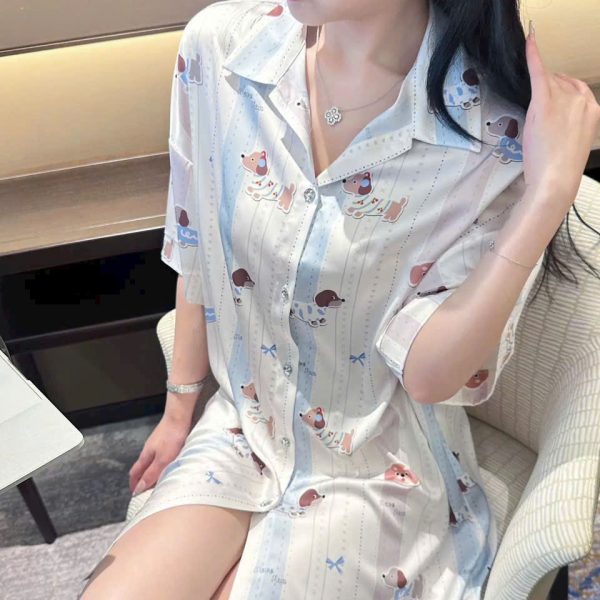 hiết kế dạng áo sơ mi dáng rộng, dài vừa phải, tạo cảm giác thoải mái khi mặc nhưng vẫn giữ được nét duyên dáng và nữ tính. Chất liệu lụa mềm mịn, mát lạnh, nhẹ nhàng trượt trên da – cực kỳ dễ chịu cả khi mặc ngủ hay thư giãn tại nhà.