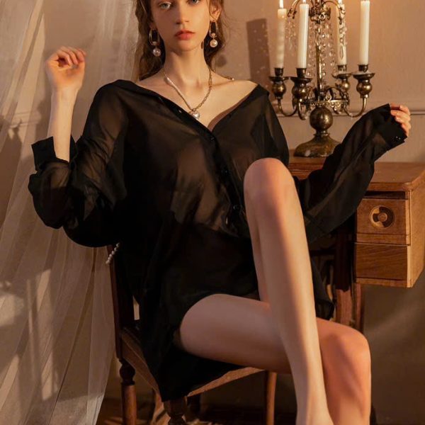 Hình ảnh chi tiết Áo sơ mi chất voan trong suốt phôm dài quyến rũ