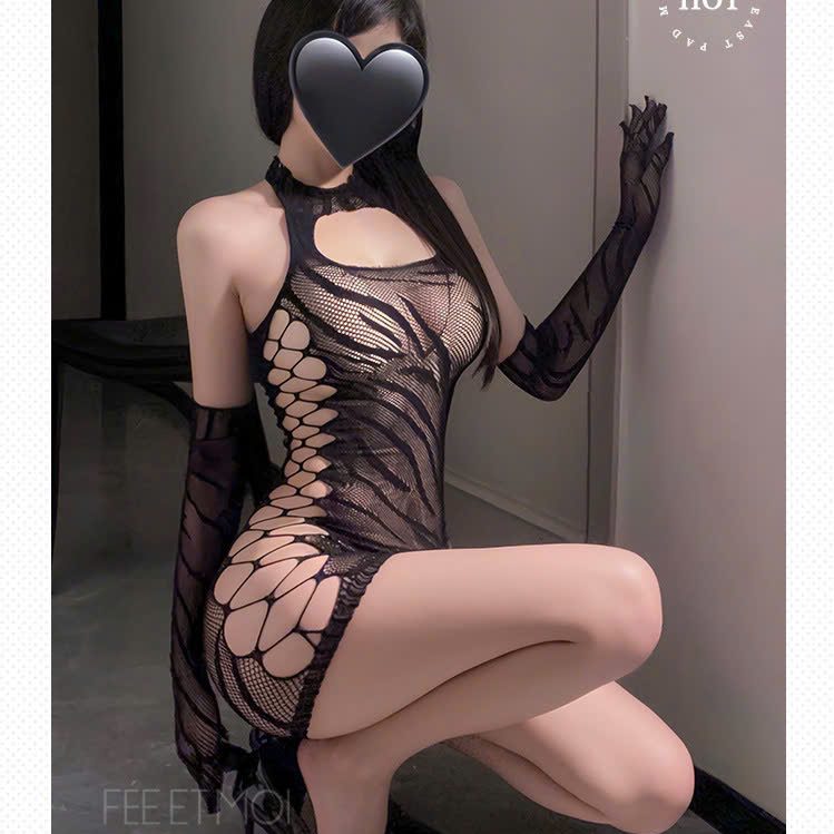 Mẫu bodystocking lưới ôm body này sở hữu thiết kế táo bạo và cực kỳ quyến rũ, phù hợp cho những nàng yêu thích phong cách nổi bật và gợi cảm. Chất liệu lưới co giãn tốt, ôm sát từng đường cong, tạo hiệu ứng dáng siêu thon gọn. Form váy mini liền thân kết hợp phần cổ yếm khoét ngực sâu giúp tôn vòng một một cách đầy cuốn hút.