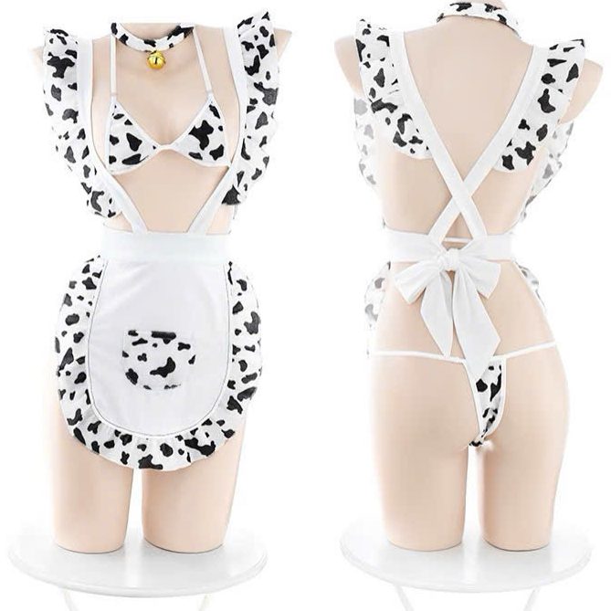 Mang phong cách ngọt ngào nhưng không kém phần quyến rũ, bộ cosplay nàng bò sữa là lựa chọn hoàn hảo cho những ai yêu thích sự đáng yêu pha chút tinh nghịch. Thiết kế bao gồm bộ đồ lót hai mảnh với họa tiết bò sữa đặc trưng, kết hợp cùng chiếc yếm nhỏ xinh giúp tăng thêm vẻ dễ thương và tinh tế.