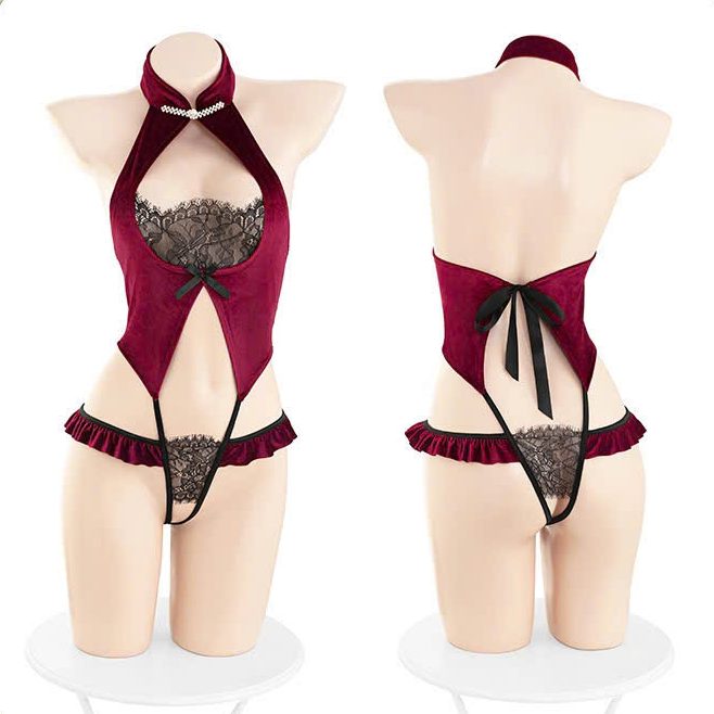 Phần thân dưới và hai bên hông có các chi tiết cắt xẻ khéo léo, giúp khoe trọn vòng eo và hông một cách tinh tế. Những đường cắt xẻ này mang đến vẻ đẹp táo bạo và đầy cuốn hút, nhưng vẫn giữ được nét mềm mại nhờ vào chất liệu ren bao quanh. Là sự lựa chọn hoàn hảo cho những ai muốn thể hiện sự quyến rũ một cách ngọt ngào và đáng yêu.