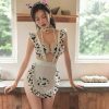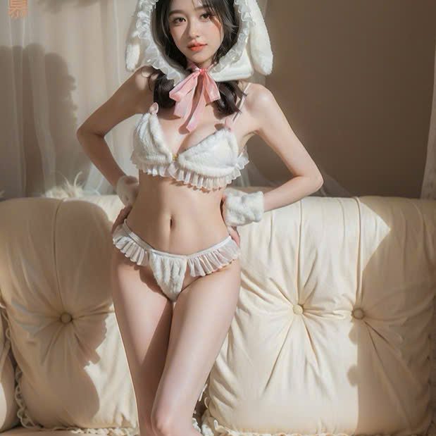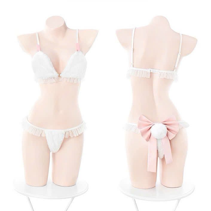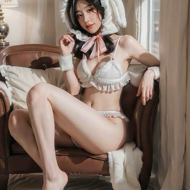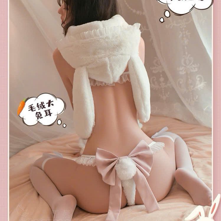 Hóa thân thành nàng thỏ quyến rũ với bộ cosplay hai mảnh đầy tinh tế! Thiết kế gồm áo bra và quần lót ren mềm mại, ôm sát cơ thể tạo nên vẻ ngoài vừa gợi cảm vừa nữ tính. Điểm nhấn đặc biệt là chiếc nón lông đi kèm đôi tai thỏ to dài, giúp tổng thể thêm phần đáng yêu và nổi bật. Phía sau, phần đuôi thỏ bông tròn xinh xắn được đính kèm một chiếc nơ nhỏ, tạo điểm nhấn tinh tế và ngọt ngào. Chất liệu vải mềm mịn, thoáng khí giúp mang lại cảm giác thoải mái khi mặc, phù hợp cho nhiều dịp như chụp ảnh nghệ thuật, sự kiện cosplay, tiệc hóa trang hoặc những khoảnh khắc riêng tư.