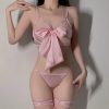 Mẫu bodysuit màu hồng pastel với thiết kế ôm body mềm mại, mang phong cách vừa dễ thương vừa gợi cảm. Phần ngực được viền ren hồng nhẹ, kết hợp nơ nhỏ ở giữa tạo điểm nhấn ngọt ngào, giúp vòng 1 trông đầy đặn và nổi bật hơn.