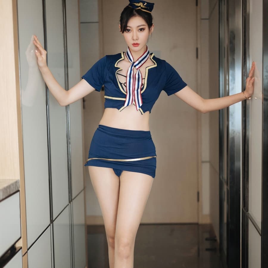 Sét cosplay tiếp viên hàng không bao gồm: nón, áo, khăn choàng cổ, váy, quần nhỏ. Hàng cao cấp chất liệu vải cotton ôm sát body kiểu dáng sáng trọng quyến rũ.