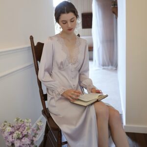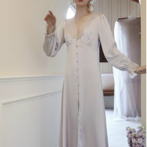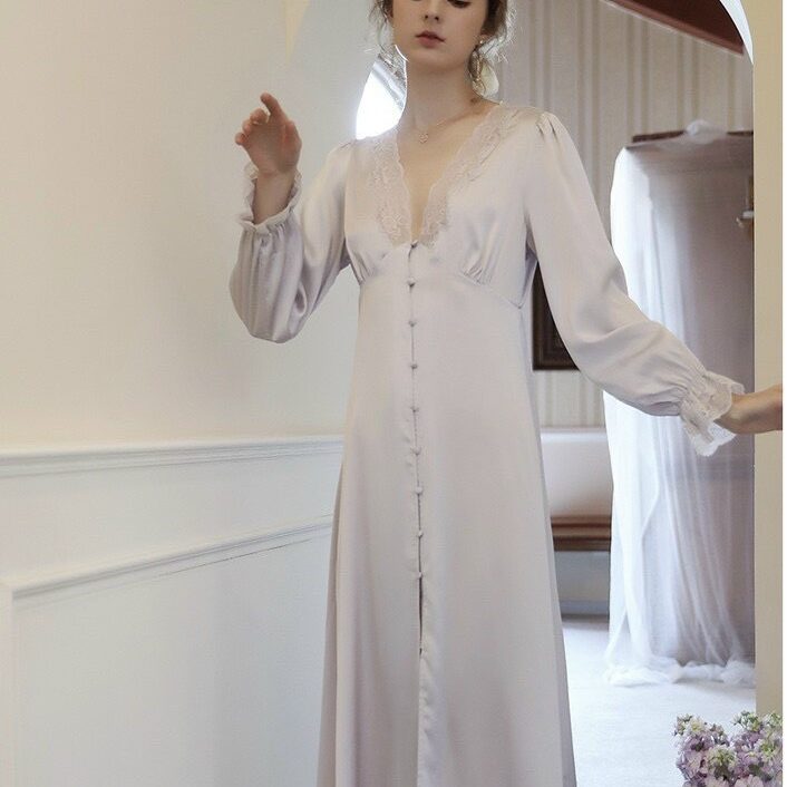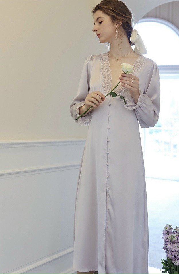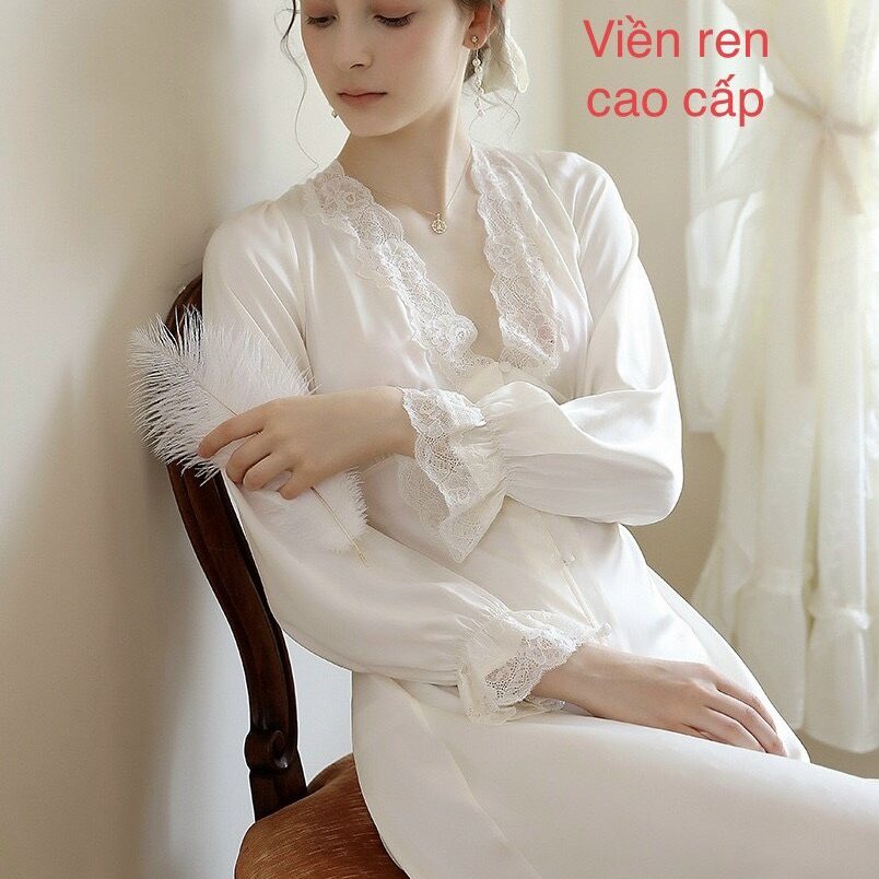 Đầm ngủ dài chất liệu lụa viền ren cao cấp kiểu dáng sang trọng mang lại cho bạn vẻ đẹp quý phái đáng yêu. Màu: trắng, tím.
