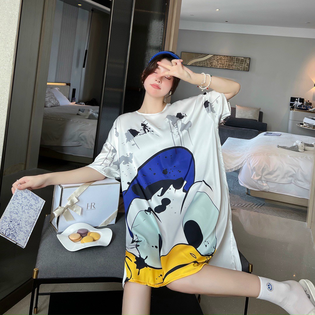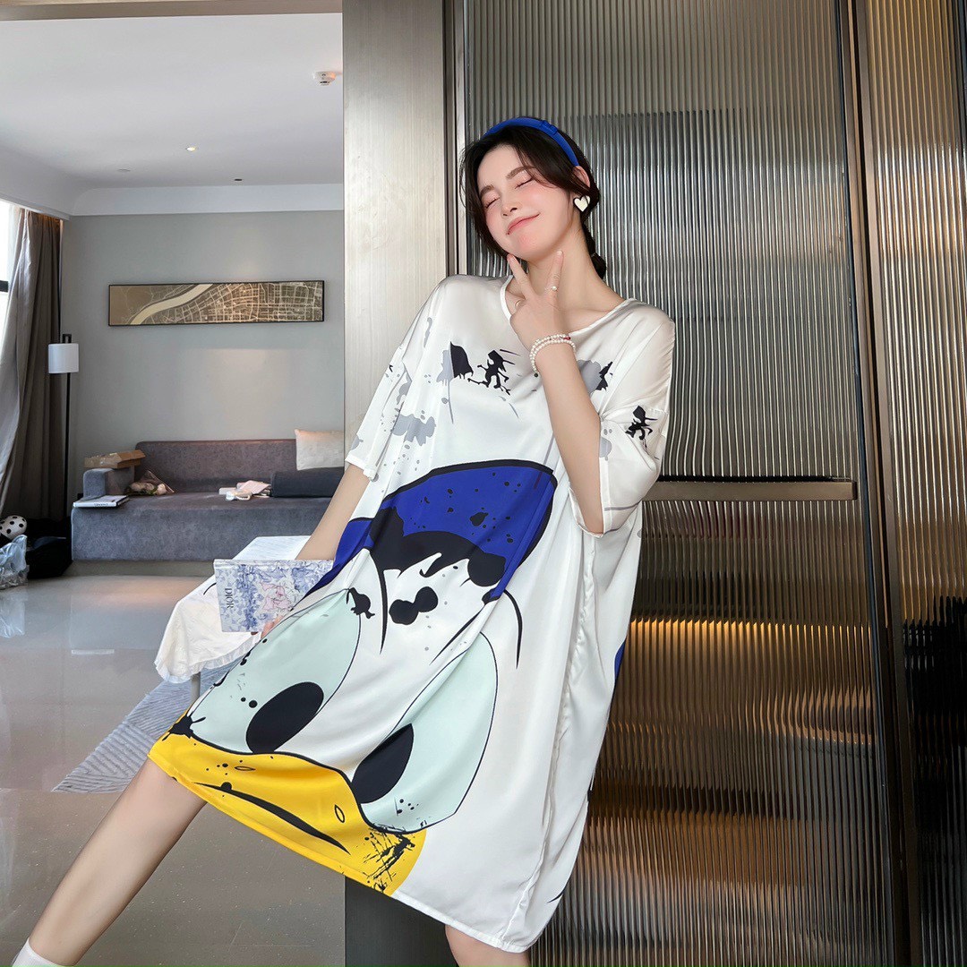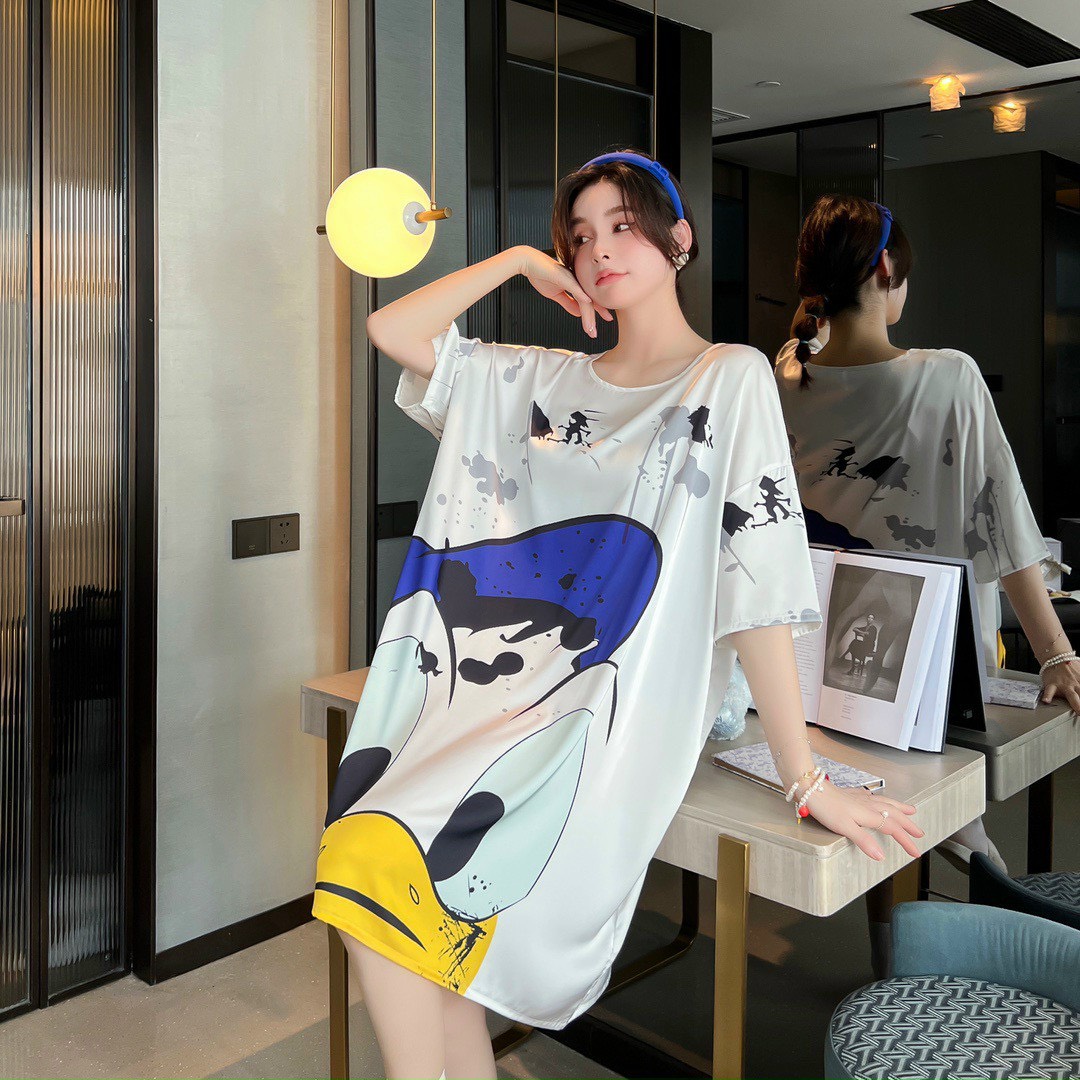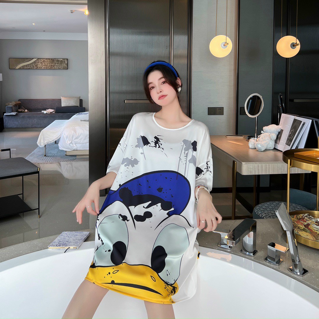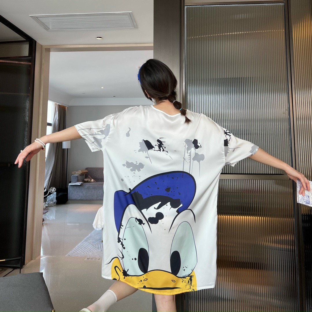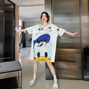 Họa tiết in sắc sảo rõ nét vịt donal cute kiểu dán. đầm ngủ sơ mi phôm rộng mang lại cho bạn nữ sự thoải mái khi mặc