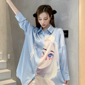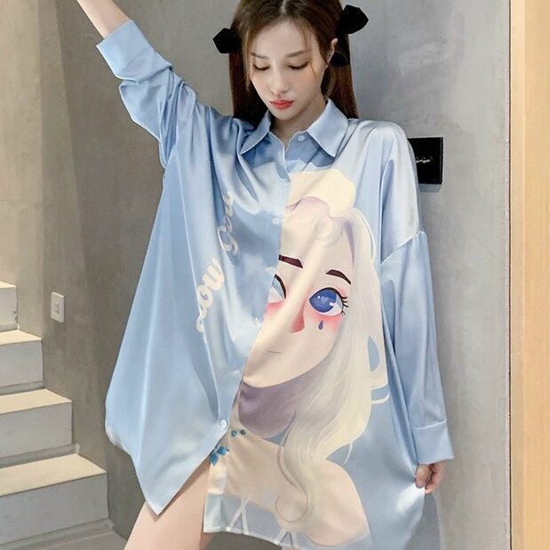 Đầm ngủ sơ mi lụa cao cấp họa tiết cô gái cá tính năng động mang đến cho bạn sự thoải mái tự tin khi mặc. Màu: xanh, hồng.