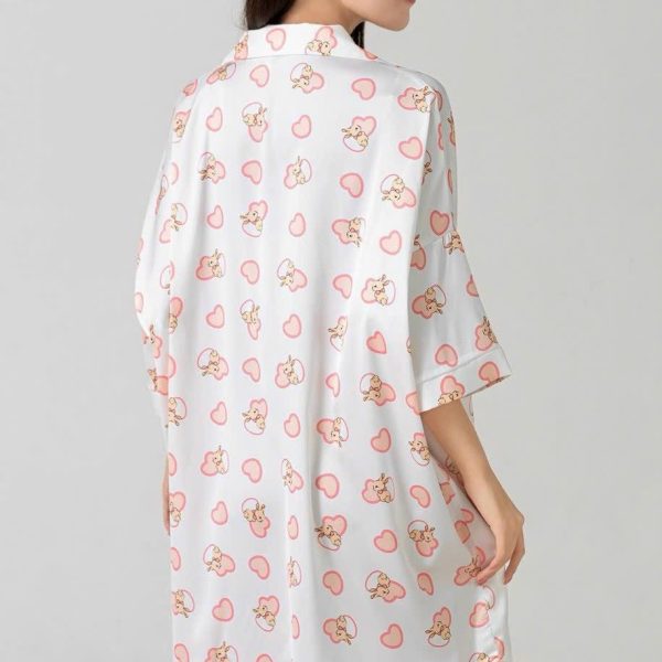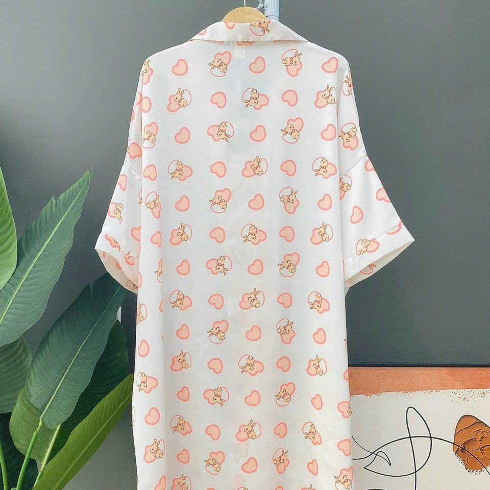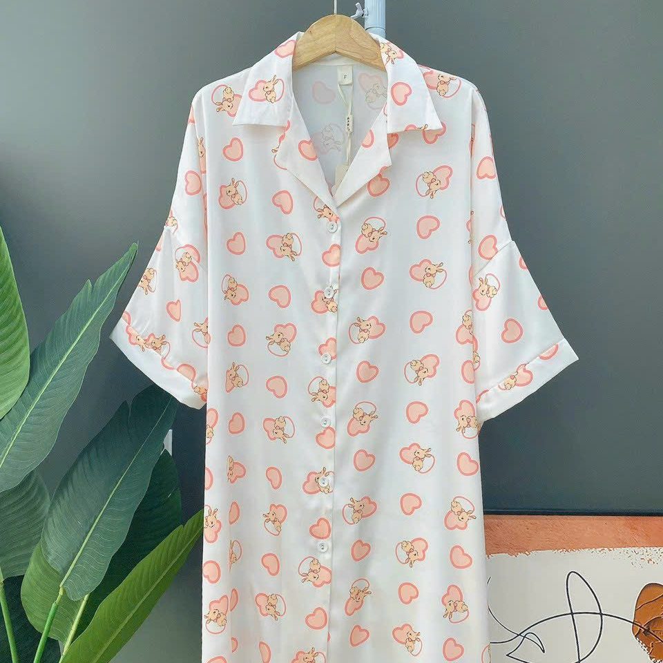 Đầm ngủ sơ mi chất liệu lụa mềm hoạ tiết cute thích hợp cho nàng yêu thích sự thoải mái nhẹ nhàng đáng yêu.