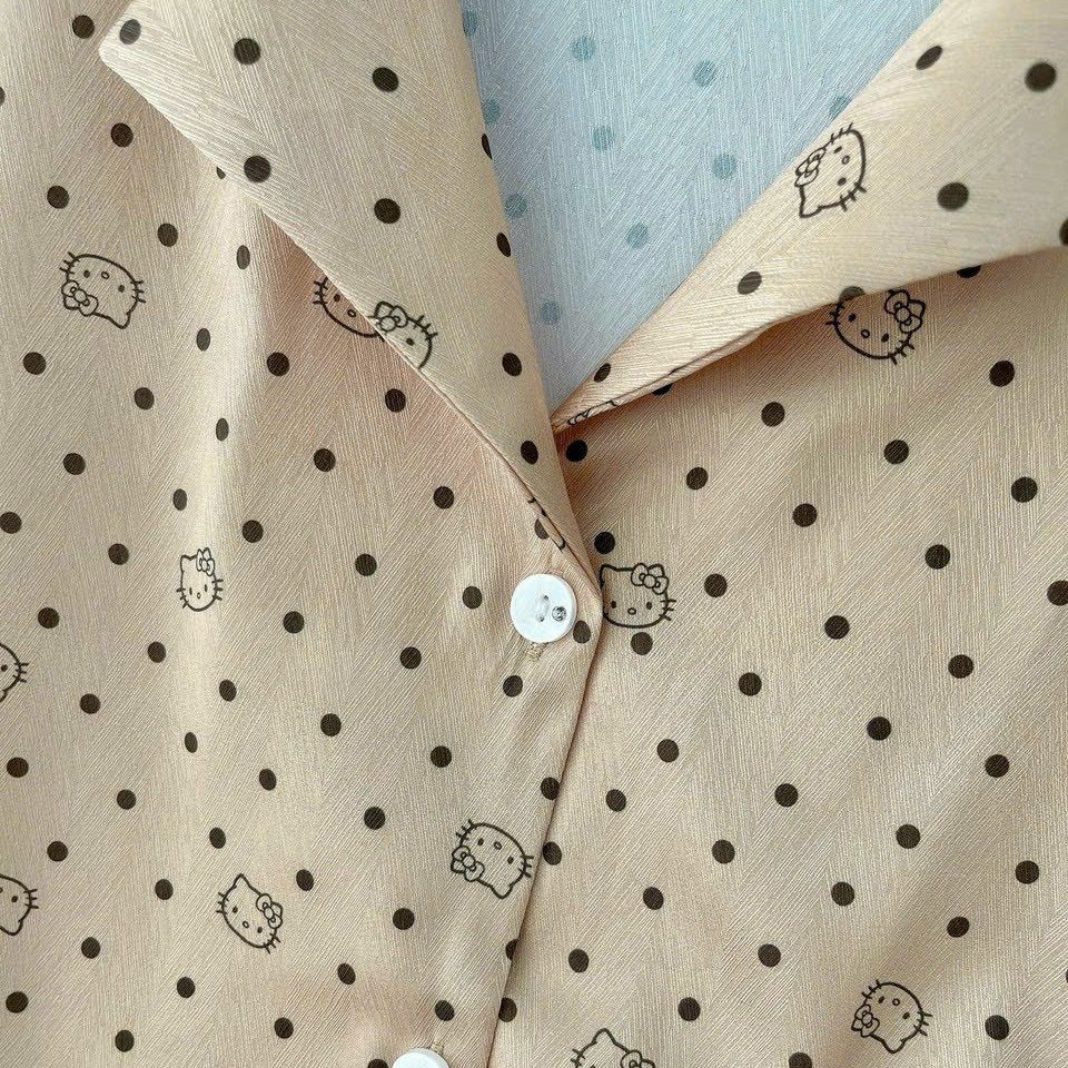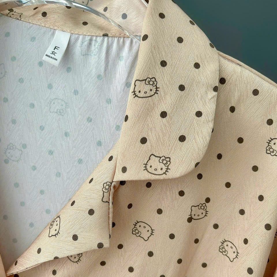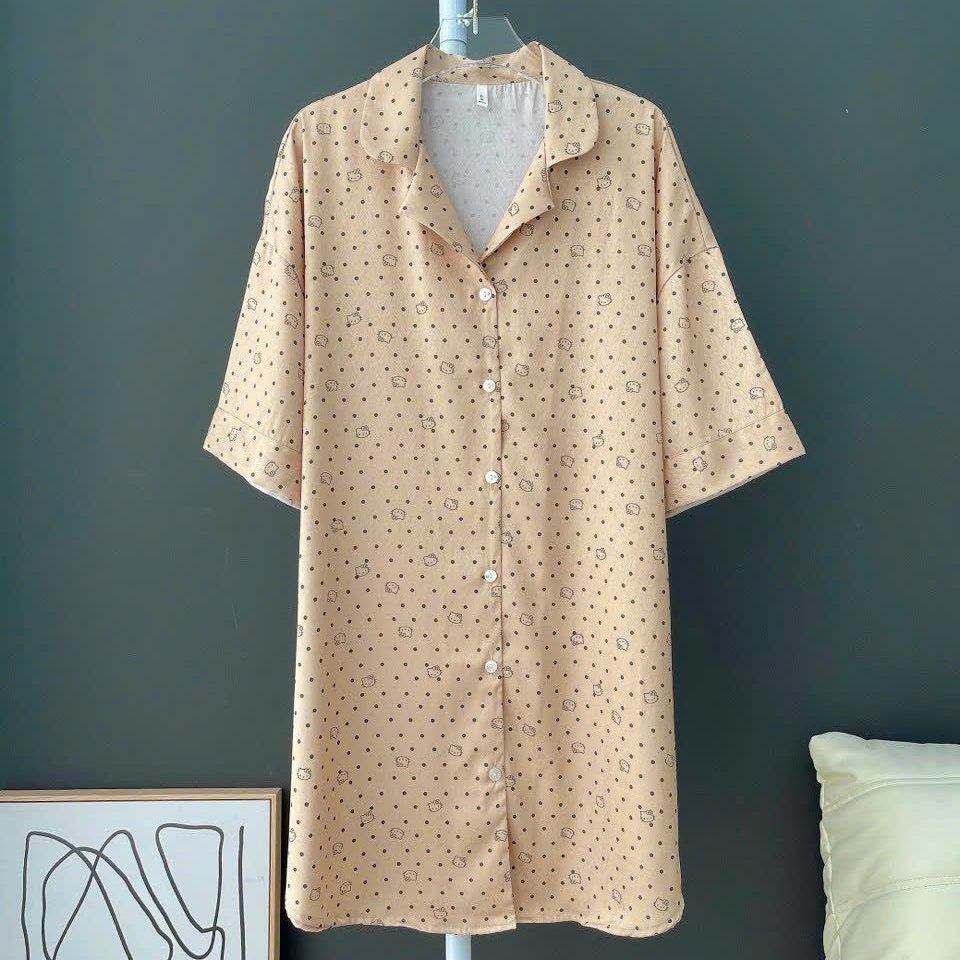 Đầm ngủ sơ mi chất liệu lụa xước không nhăn hoạ tiết cute đáng yêu.