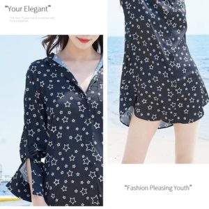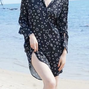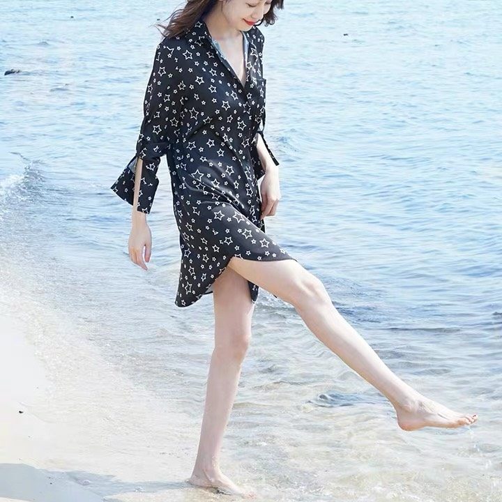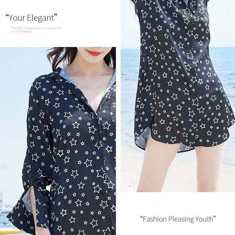 Đầm ngủ sơ mi chất liệu phi lụa họa tiết ngôi sao nhỏ sang trọng, kiểu dáng hiện đại trẻ trung cho bạn vẻ tươi trẻ gợi cảm.