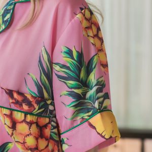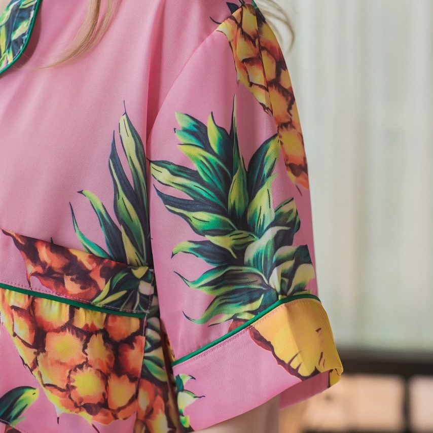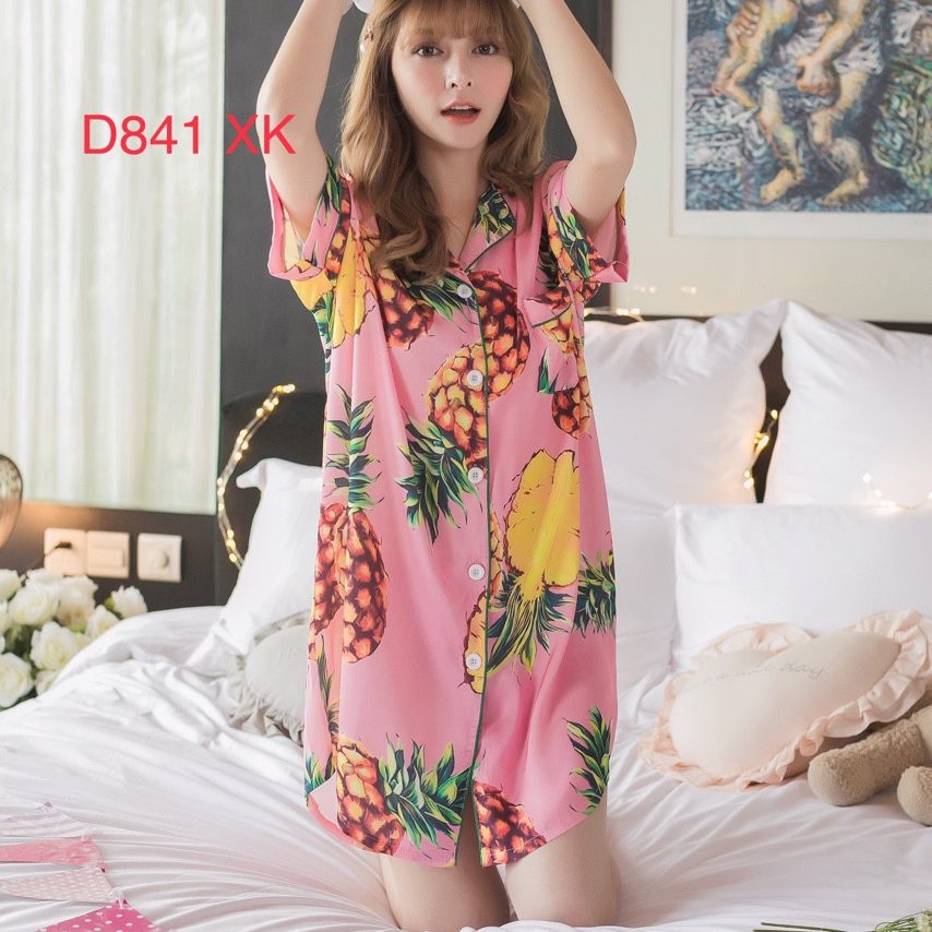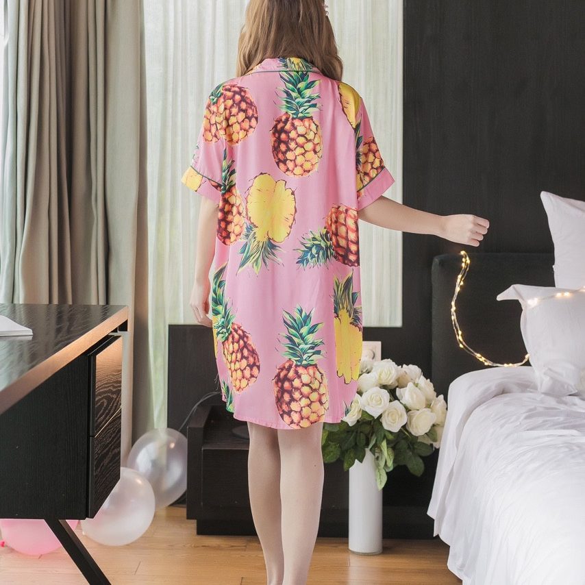 Đầm ngủ sơ mi chất liệu phi lụa cao cấp, họa tiết trái thơm dễ thương.