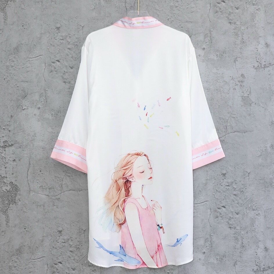 Chất liệu lụa cao cấp mềm mịn họa tiết in 3D cực đẹp, kiểu dáng cực dễ thương cho nàng thêm phần tự tin đáng yêu trước mặt chàng. Màu: trắng, hồng.