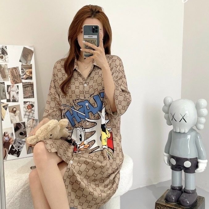 Đầm ngủ sơ mi chất liệu lụa cao cấp hoạ tiết in sang trọng cho bạn cảm giác thoải mái dễ chịu khi mặc.