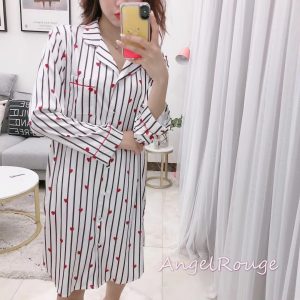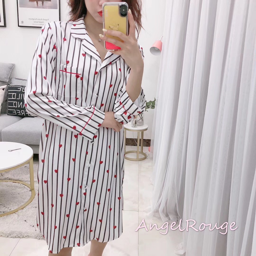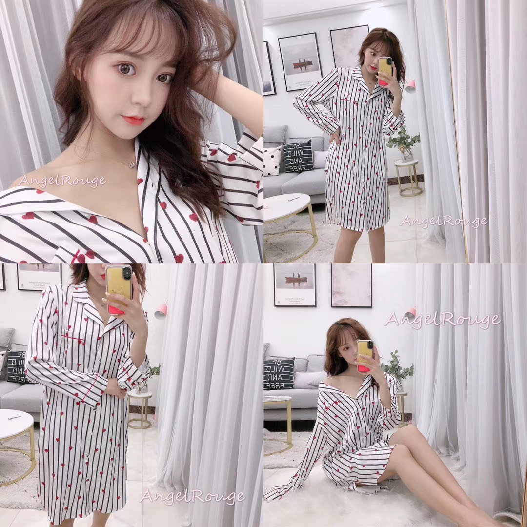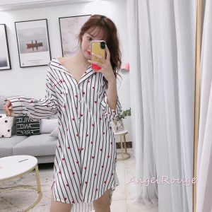 Đầm ngủ sơ mi chất liệu phi lụa cao cấp họa tiết tim sang trọng mang lại cho bạn gái phong cách gợi cảm cá tính dễ thương.