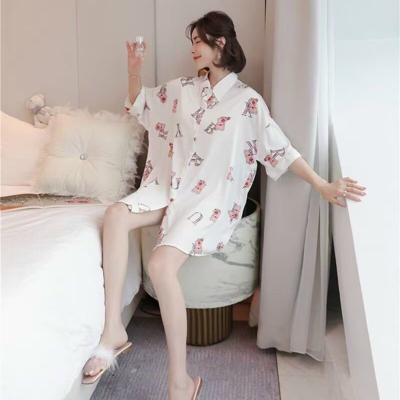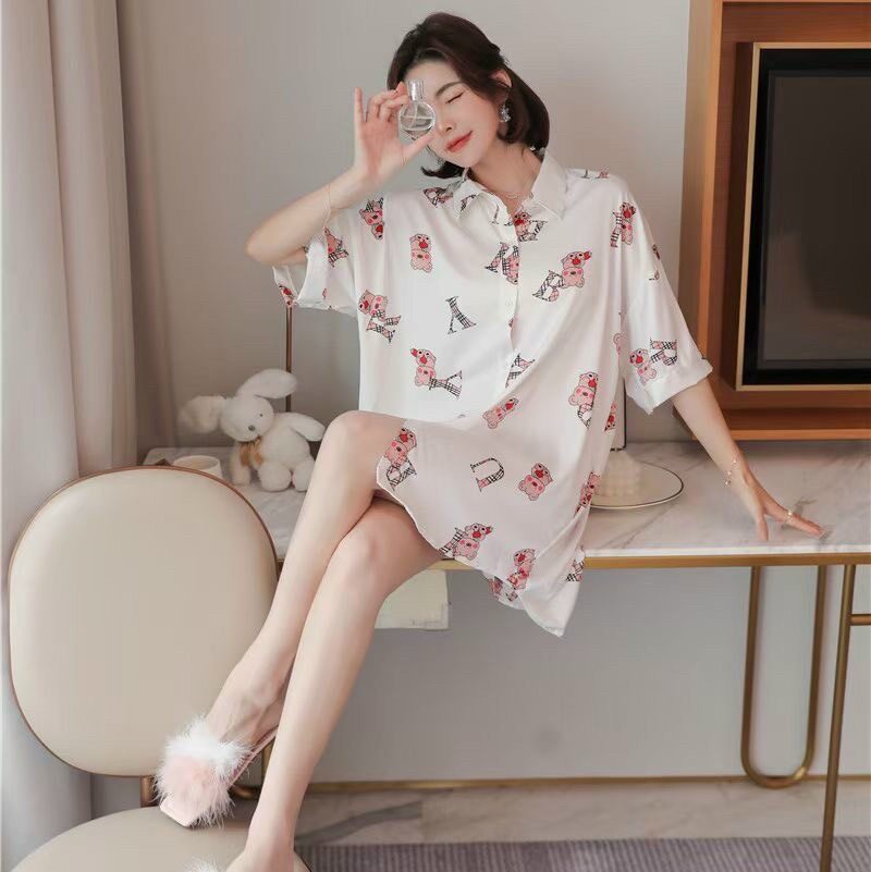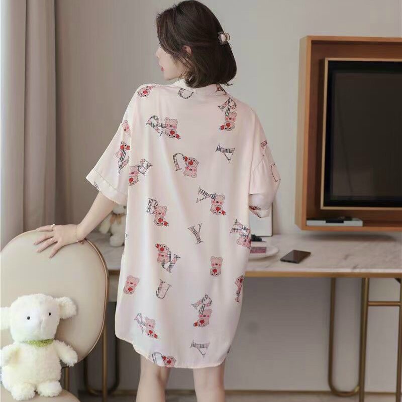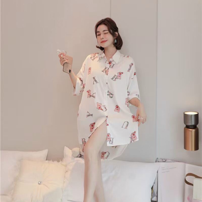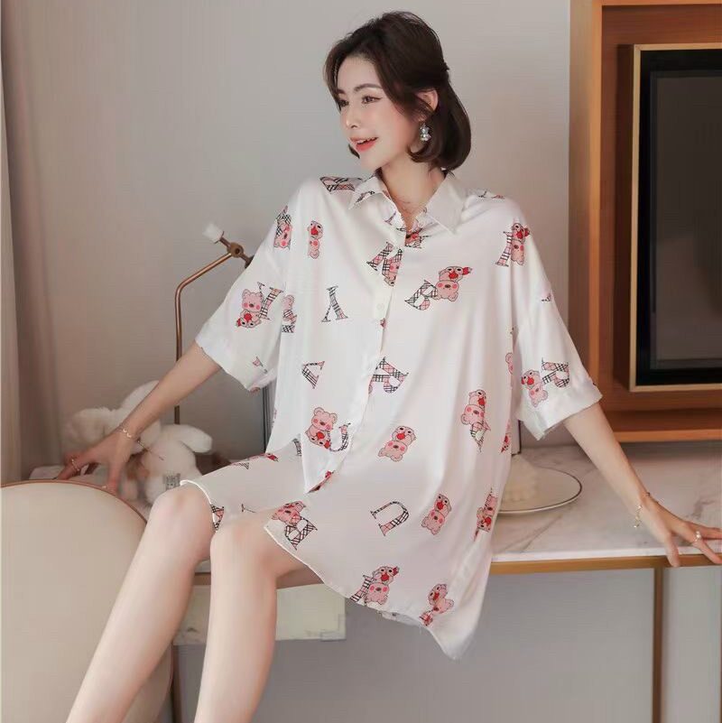 Chất liệu lụa mềm mịn form đầm ngủ rộng họa tiết in đáng yêu gấu teddy đáng yêu chắc chắn đem lại cho bạn sự thoải mái tự tin khi mặc.