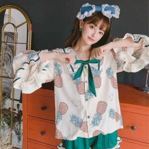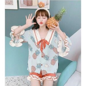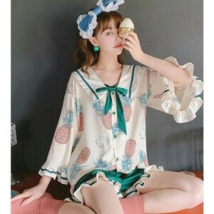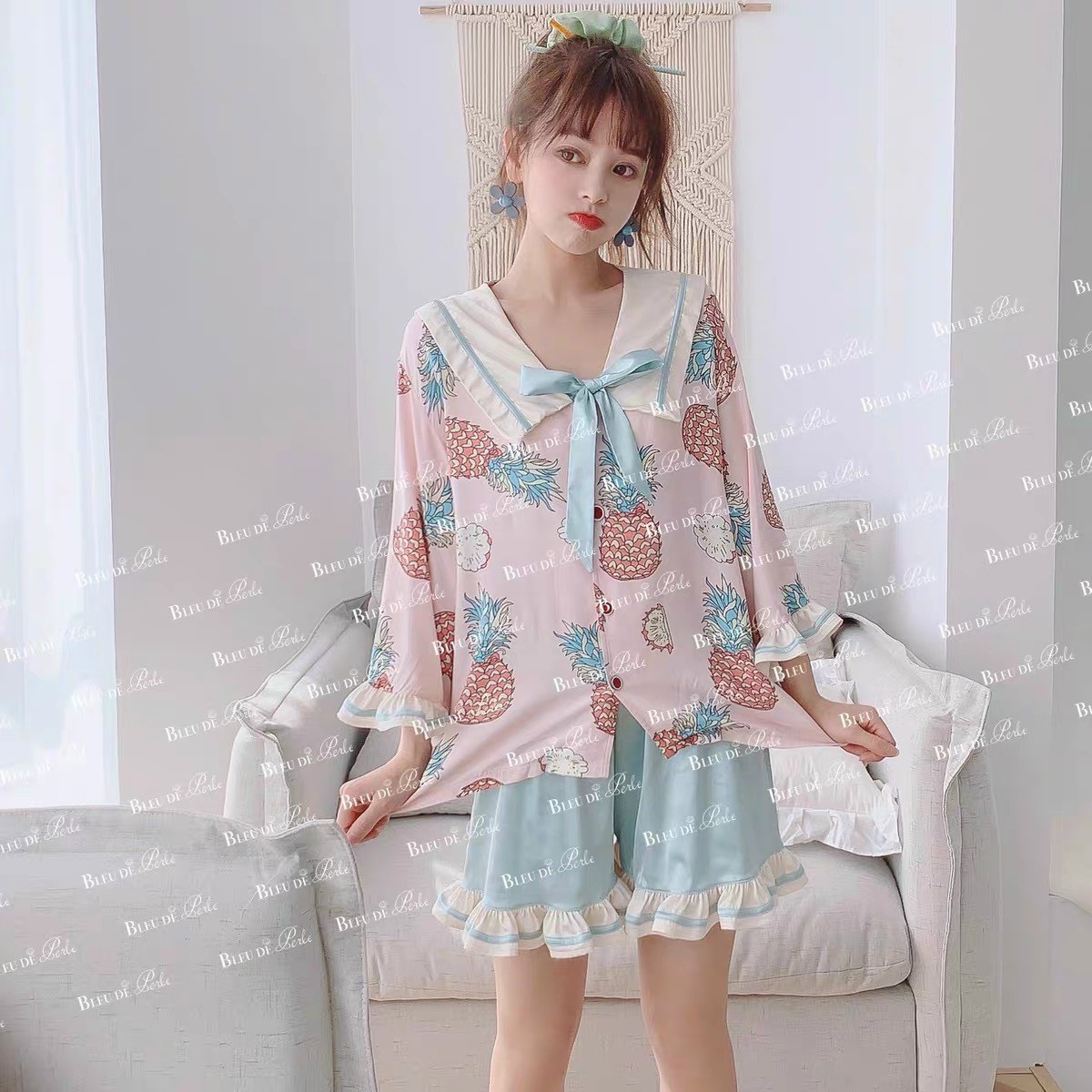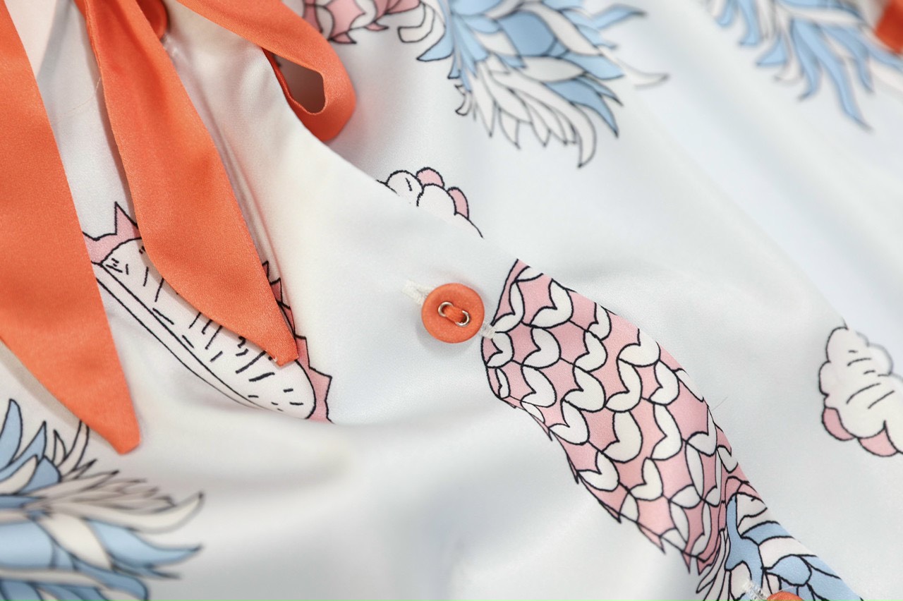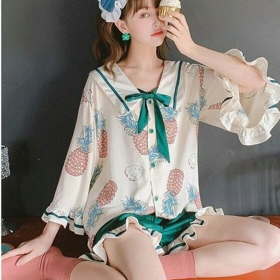 Chất liệu lụa cao cấp họa tiết trái thơm cute kiểu dáng trẻ trung hiện đại mang lại cho bạn vẻ đẹp ngây thơ trong sáng khi mặc. Màu: vàng, xanh, xám.