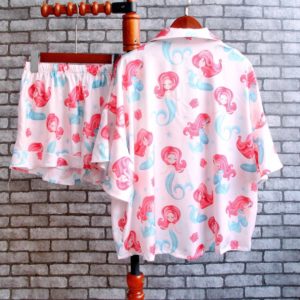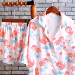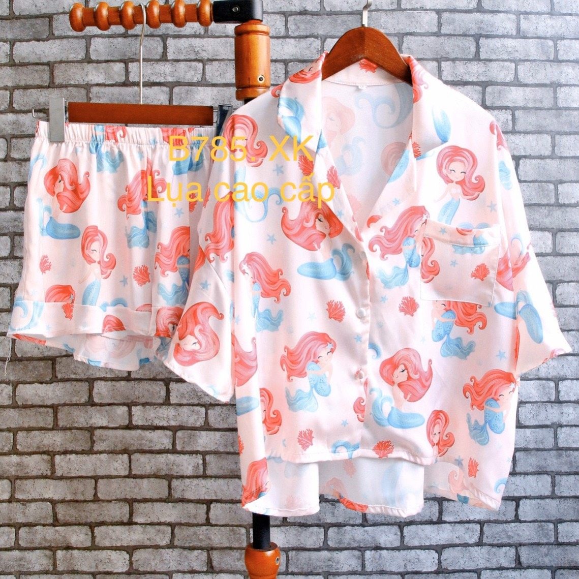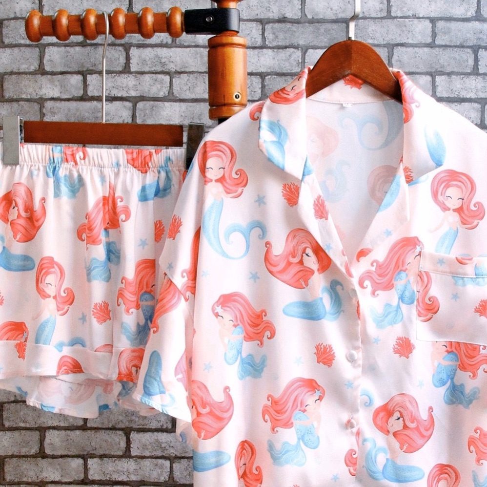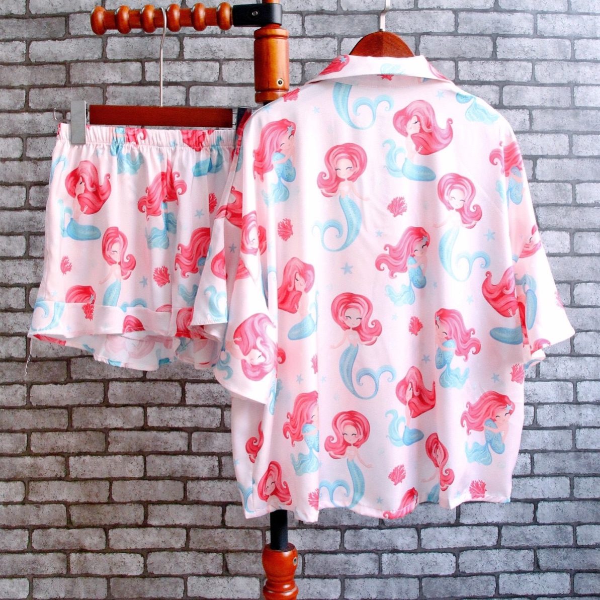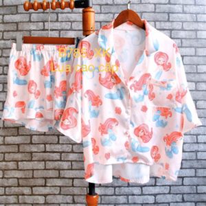 Chất liệu lụa mềm mịn cao cấp không nhăn, đồ bộ kiểu dáng ngắn tay lỡ họa tiết nàng tiên cá cực kỳ đáng yêu cute.