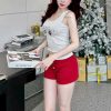 Chất liệu lụa cao cấp mềm mịn, mát lạnh khi chạm da, tạo cảm giác thoải mái và thư giãn tuyệt đối. Áo hai dây mảnhphối ren viền ngực tinh xảo, điểm nhấn nhẹ nhàng ở phần buộc dây giữa ngực tôn lên vòng một gợi cảm mà vẫn kín đáo. Quần ngắn dáng cong mềm mại giúp khoe khéo đôi chân thon, mang lại vẻ tự nhiên đầy cuốn hút.