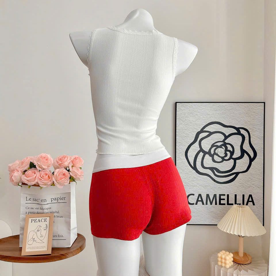 Chất liệu cotton co giãn mềm mịn, thấm hút tốt, ôm nhẹ cơ thể tạo cảm giác dễ chịu suốt cả ngày. Thiết kế áo ôm dáng kết hợp quần ngắn giúp tôn đường cong tự nhiên, vừa gợi cảm vừa tinh nghịch.