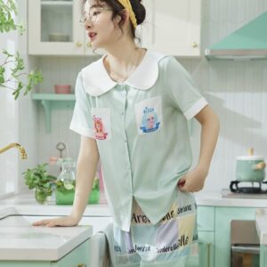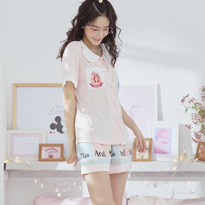 Chất phi lụa cao cấp mềm mịn kiểu dáng cùng họa tiết đáng yêu mang đến cho bạn gái vẻ đẹp ngây thơ trong sáng. Màu: hồng, xanh.