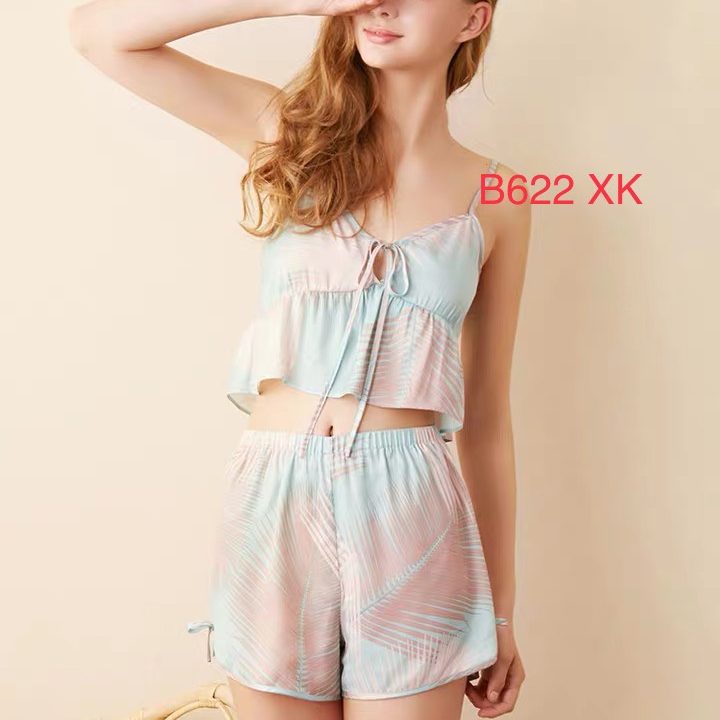 Đồ bộ ngủ phi lụa hai dây cute DB622