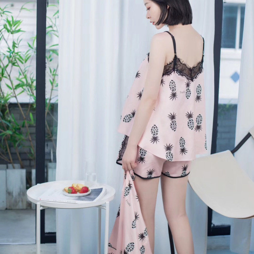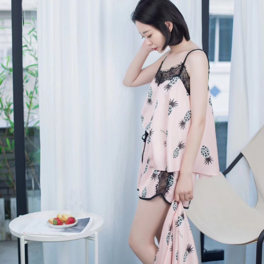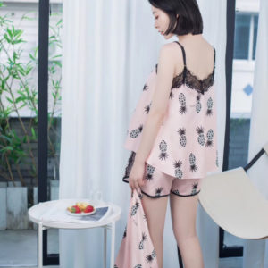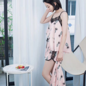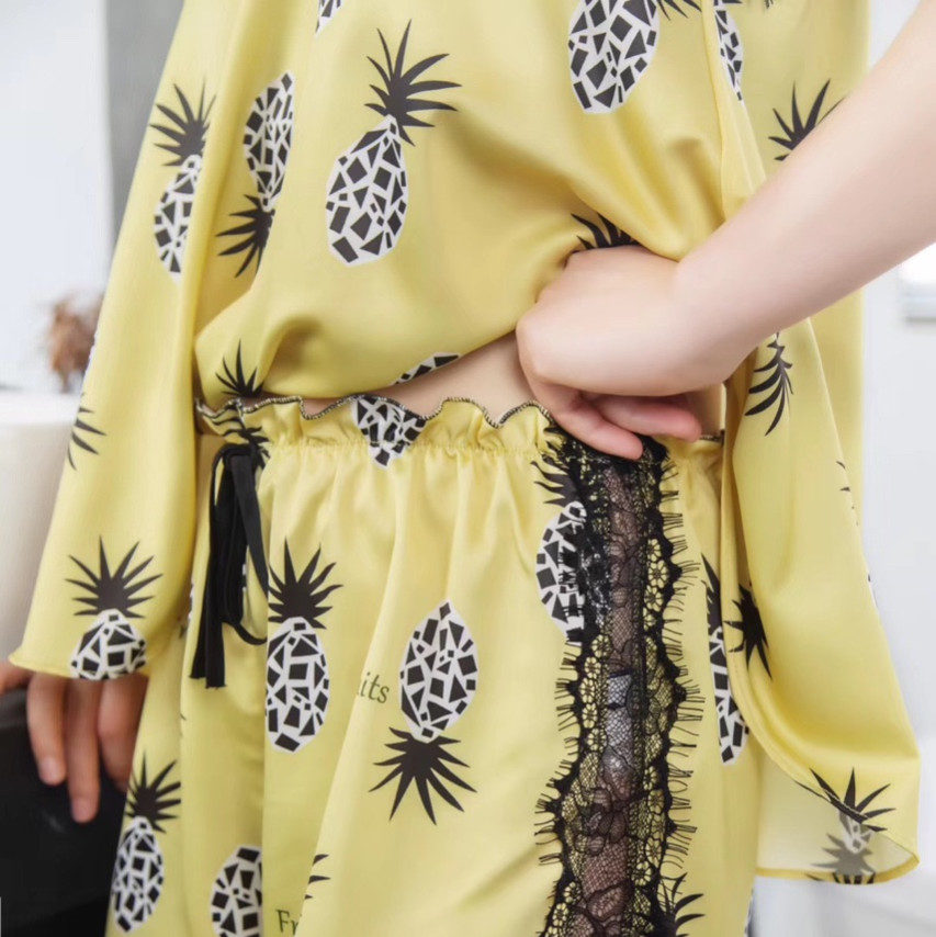 Đồ bộ chất liệu phi lụa mềm mịn họa tiết trái thơm cute màu sắc nổi bật mang lại cho bạn gái vẻ đáng yêu gợi cảm. Màu: vàng, hồng.