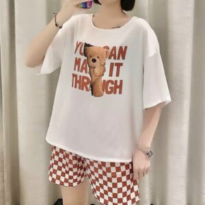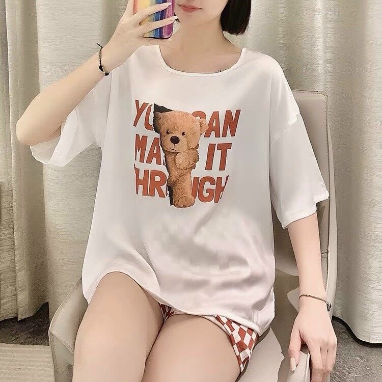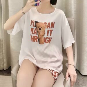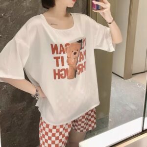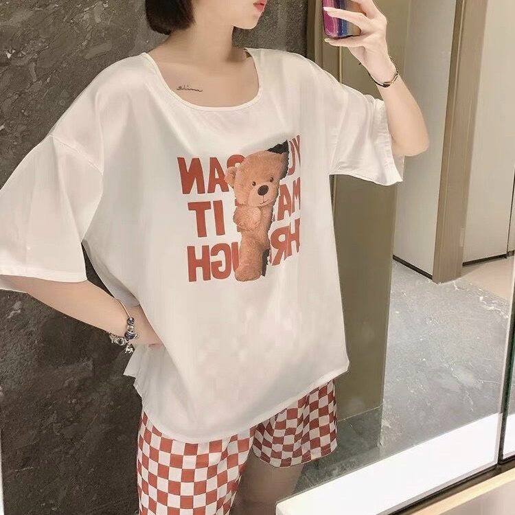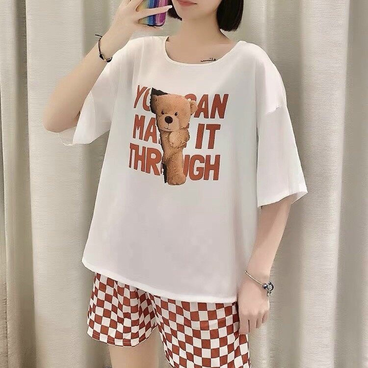 Chất liệu lụa mềm mịn mặc cực mát hoạt tiết gấu cute đáng yêu quần caro mang lại cho bạn sự thoải mái khi ở nhà.