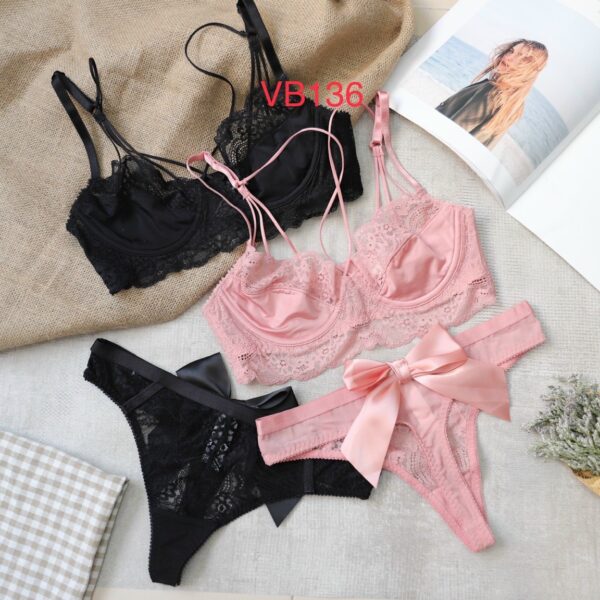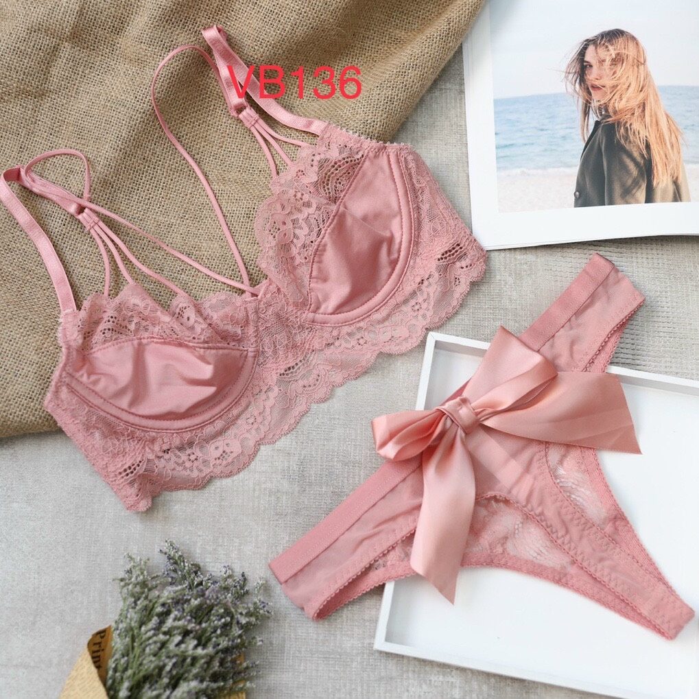 Hình ảnh chi tiết Đồ lót bộ có gọng không mút quần đính nơ cực cute 2 màu
