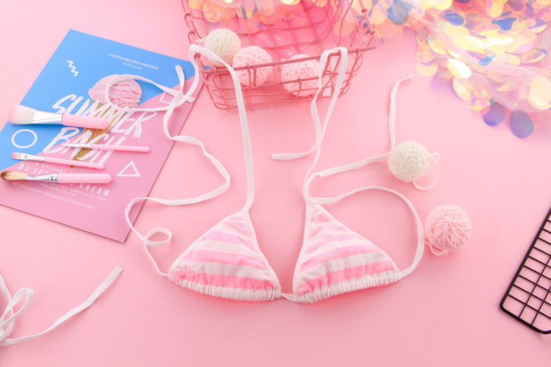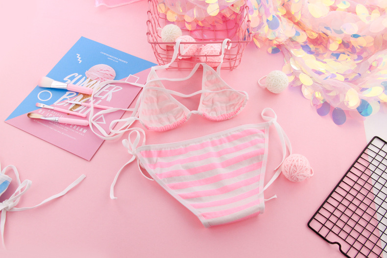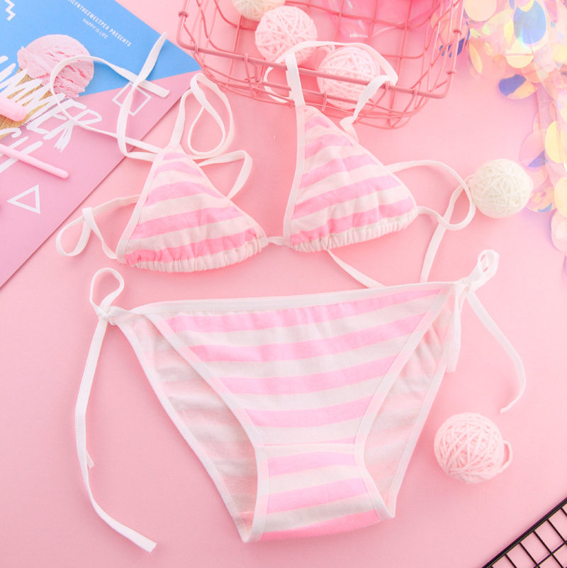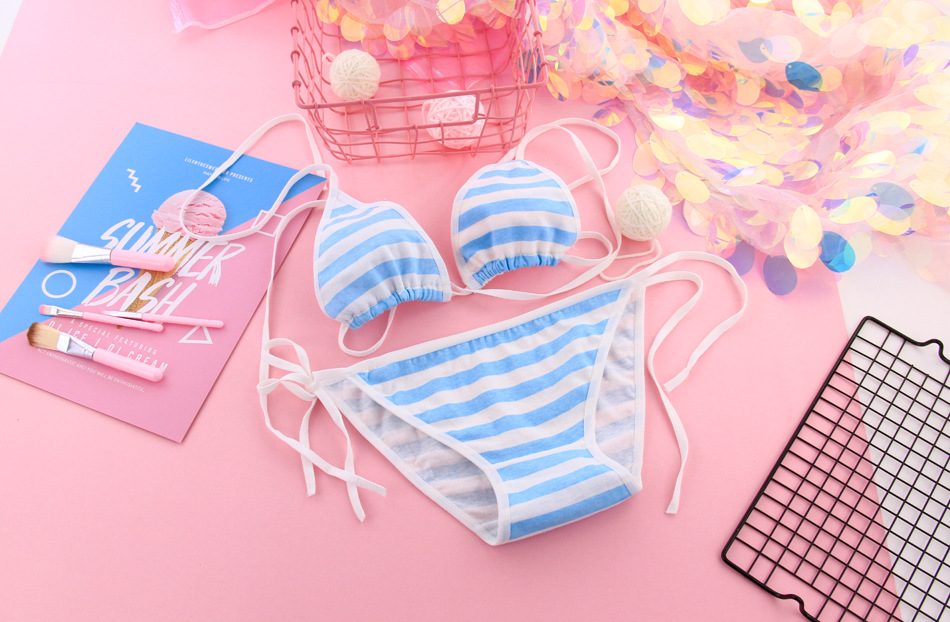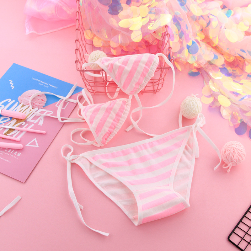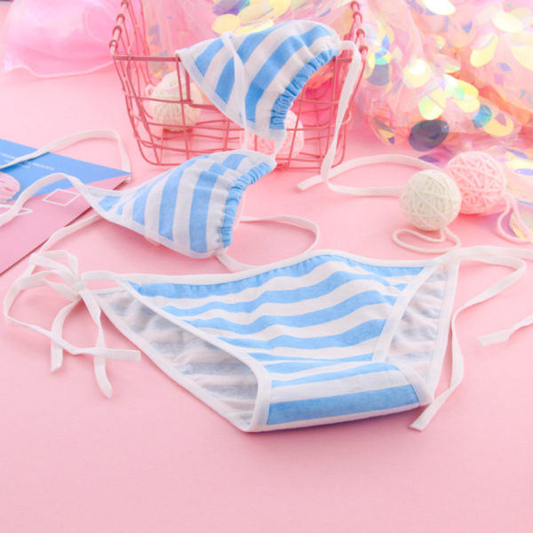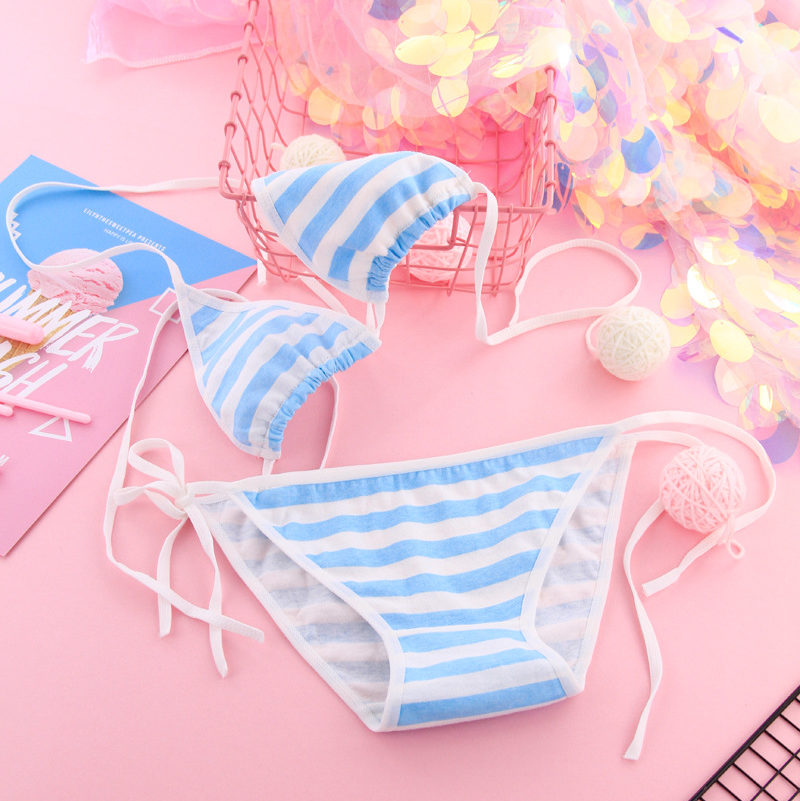 Bộ đồ lót cột dây họa tiết màu sắc cute đáng yêu cho nàng thêm cá tính đáng yêu trước mắt chàng. Màu: hồng, xanh.