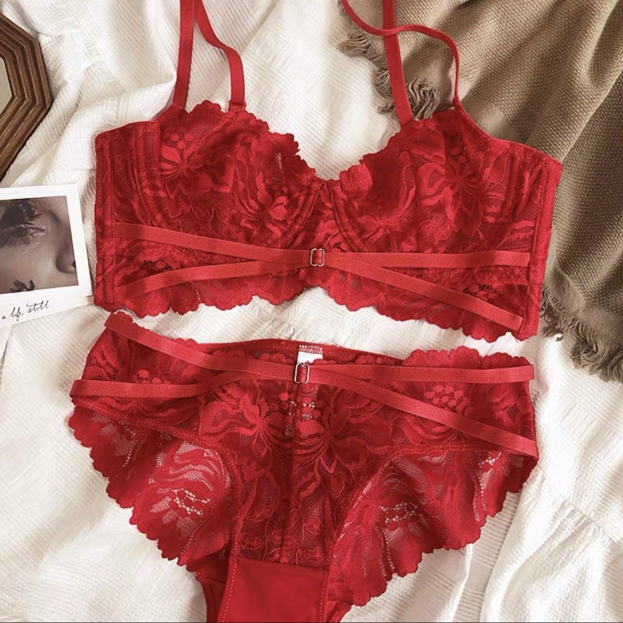 Hình ảnh chi tiết Đồ lót bộ ren có gọng lớp lót nhẹ mặc cực thích 4 màu