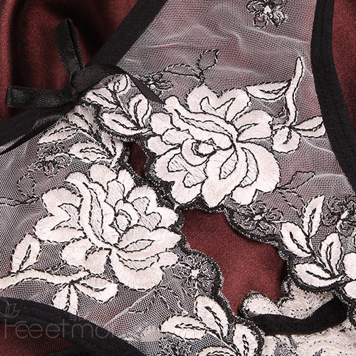 Hình ảnh chi tiết Đồ lót bộ ren họa tiết hoa thêu quần xẻ đáy gợi cảm
