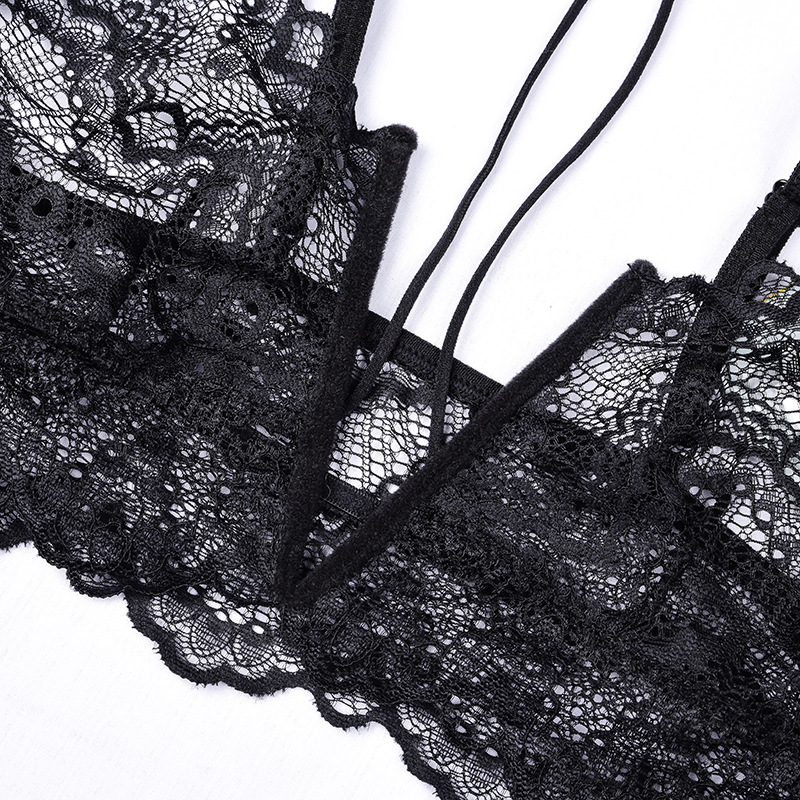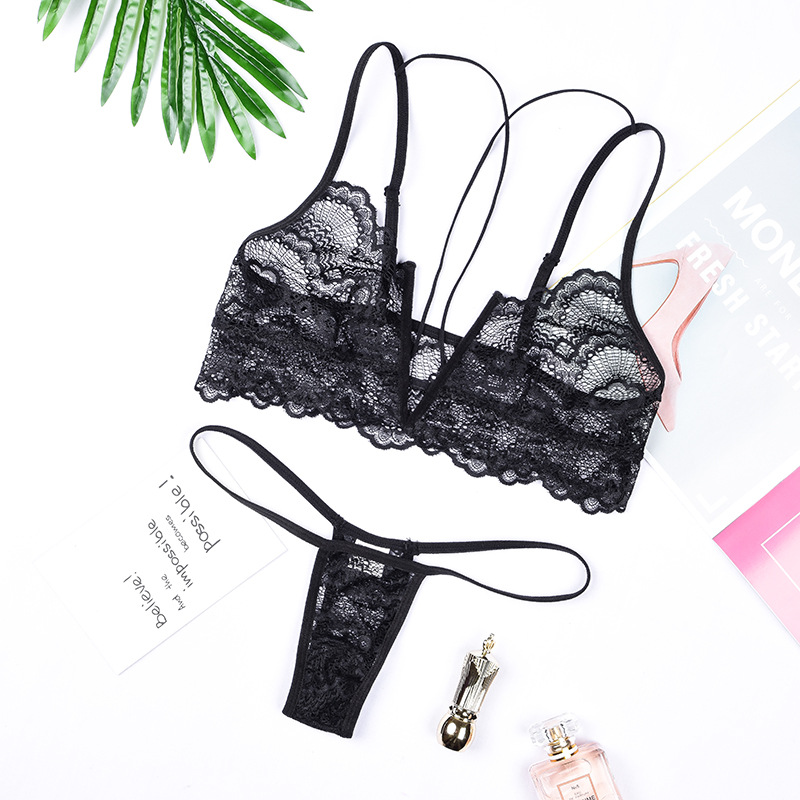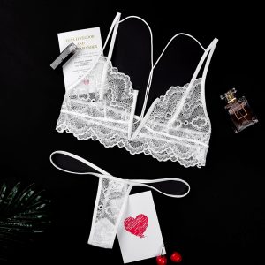 Đồ lót bộ ren gọng chữ V kiểu dáng vô cùng sexy hấp dẫn, quần chíp bé xinh đủ tạo nên sự tò mò không khỏi rời mắt từ các chàng trai. Hai màu: trắng, đen.