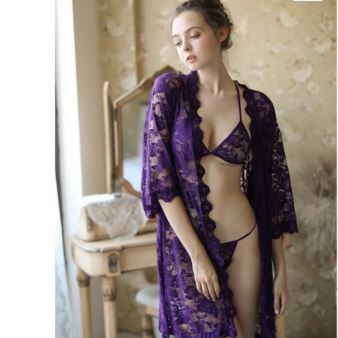Sét choàng ren và đồ lót bộ chất liệu ren mang đến cho bạn vẻ gợi cảm khó cưỡng, kiểu dáng thiết kế hiện đại sang trọng nhưng khong kém phần sexy. Màu: đen, đỏ, tím.