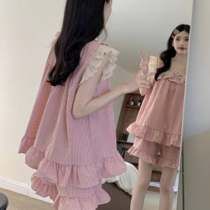 Bộ đồ ngủ này không chỉ là trang phục thoải mái cho giấc ngủ mà còn là “vũ khí” giúp bạn gái trở nên dễ thương và ngọt ngào hơn trong mắt người thương. Phù hợp để mặc ở nhà hoặc trong những buổi tối thư giãn cùng bạn bè.