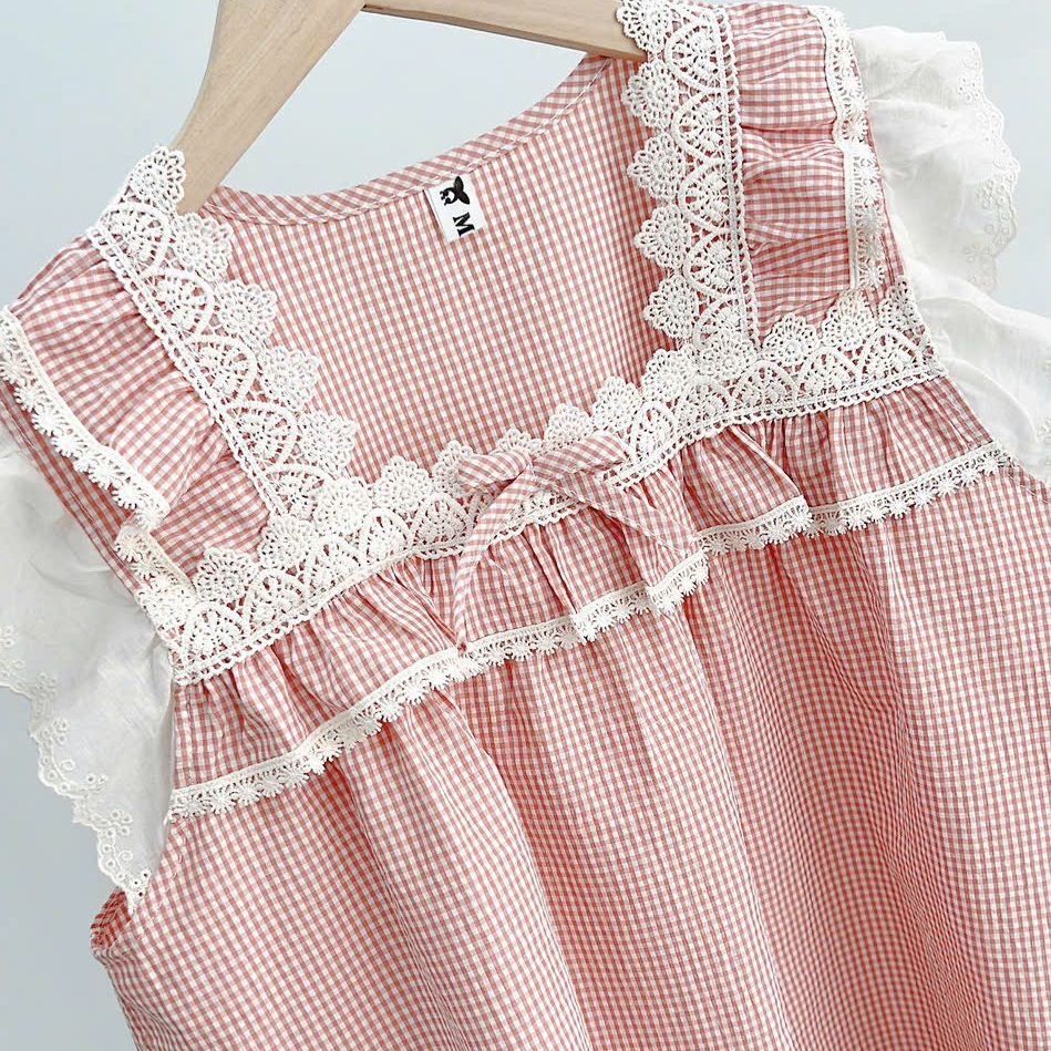Kiểu dáng: Thiết kế kiểu dáng công chúa với phần áo form rộng nhẹ nhàng, tay áo phồng nhẹ tạo cảm giác bồng bềnh và dễ thương. Cổ áo vuông viền ren, tạo điểm nhấn tinh tế và duyên dáng.