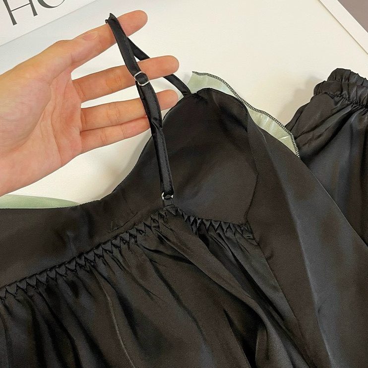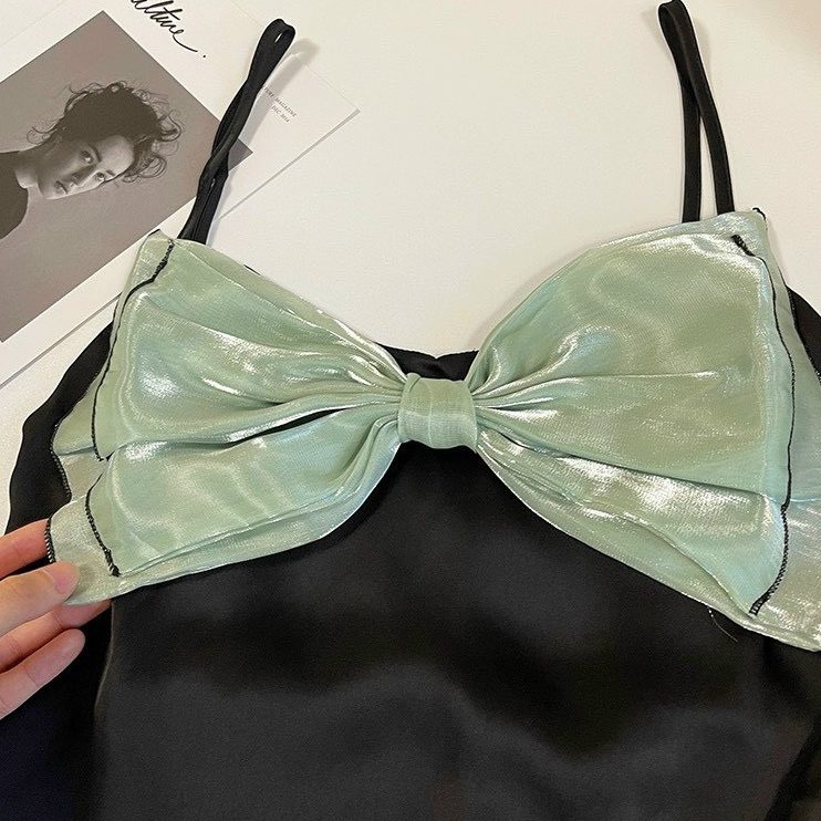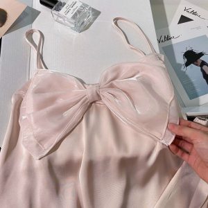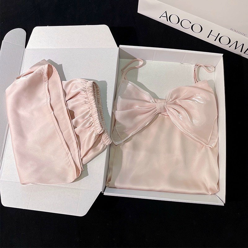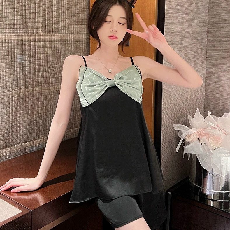 Đồ ngủ bộ hai dây chất liệu lụa mềm đính nơ to cực cute mang lại vẻ đáng yêu sự thoải mái cho bạn gái. Màu sắc: đen, hồng.
