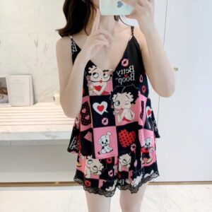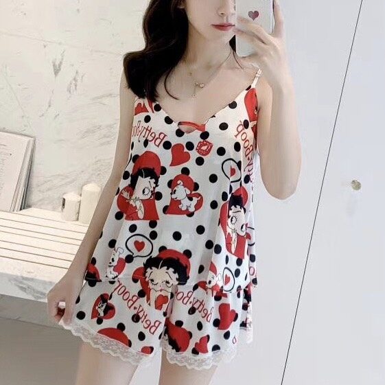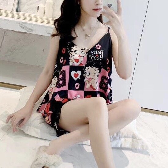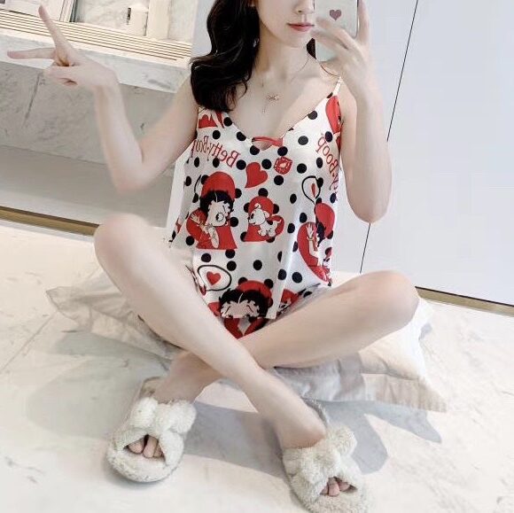 Đồ ngủ bộ kiểu dáng hai dây truyền thống chất liệu lụa cao cấp mềm mịn họa tiết cực dễ thương và sang trọng. Màu: đen, đỏ, hồng, xanh.