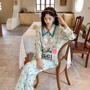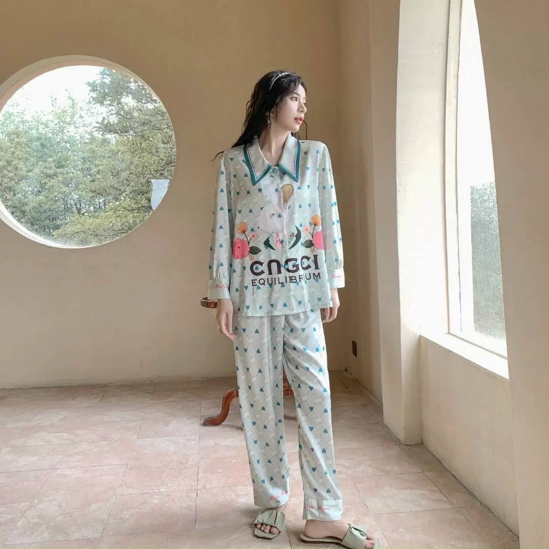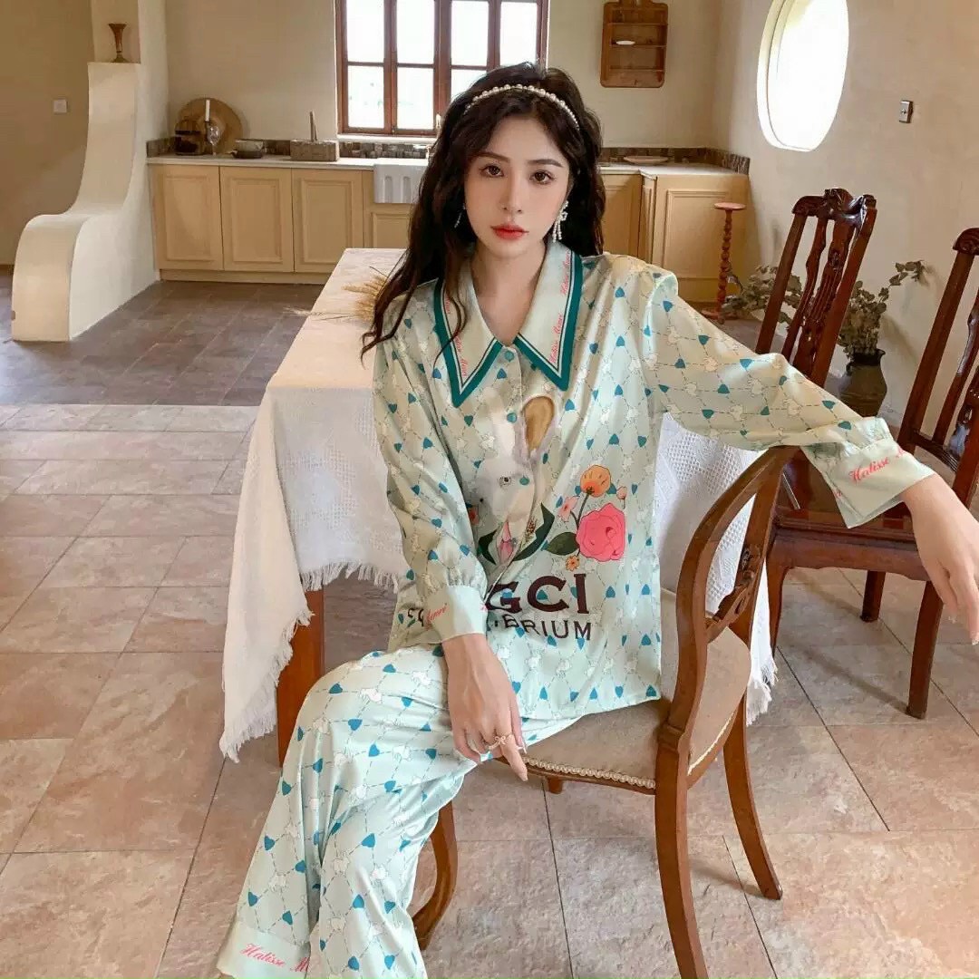 Kiểu dáng quần dài tay dài chất lụa cao cấp mềm mịn không nhăn hoạ tiết sang trọng màu sắc tươi trẻ.