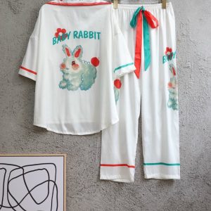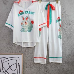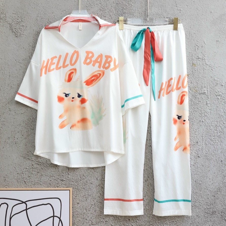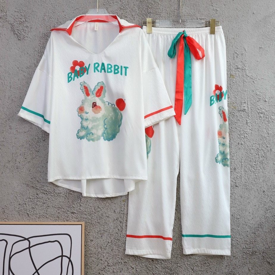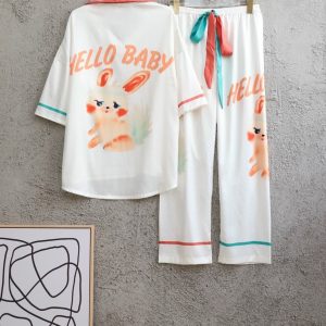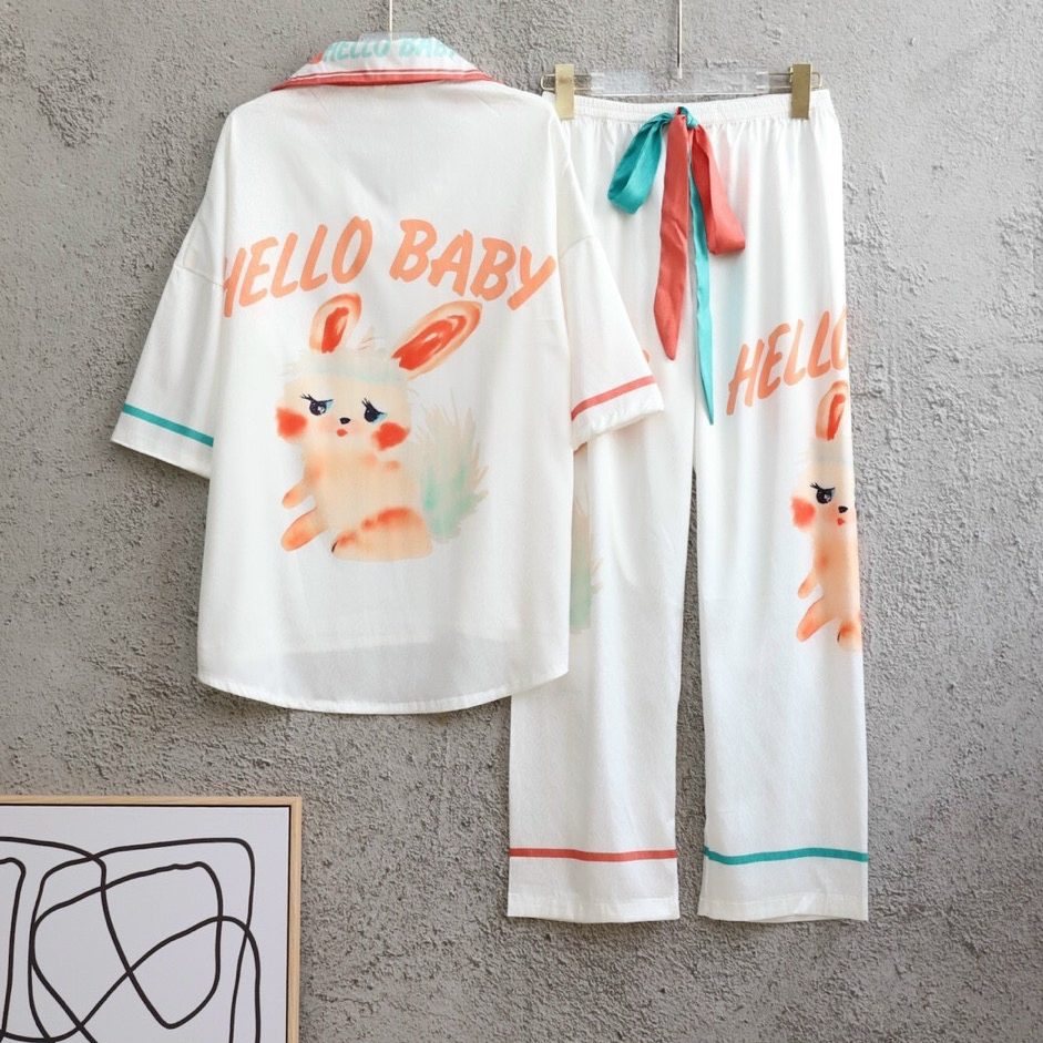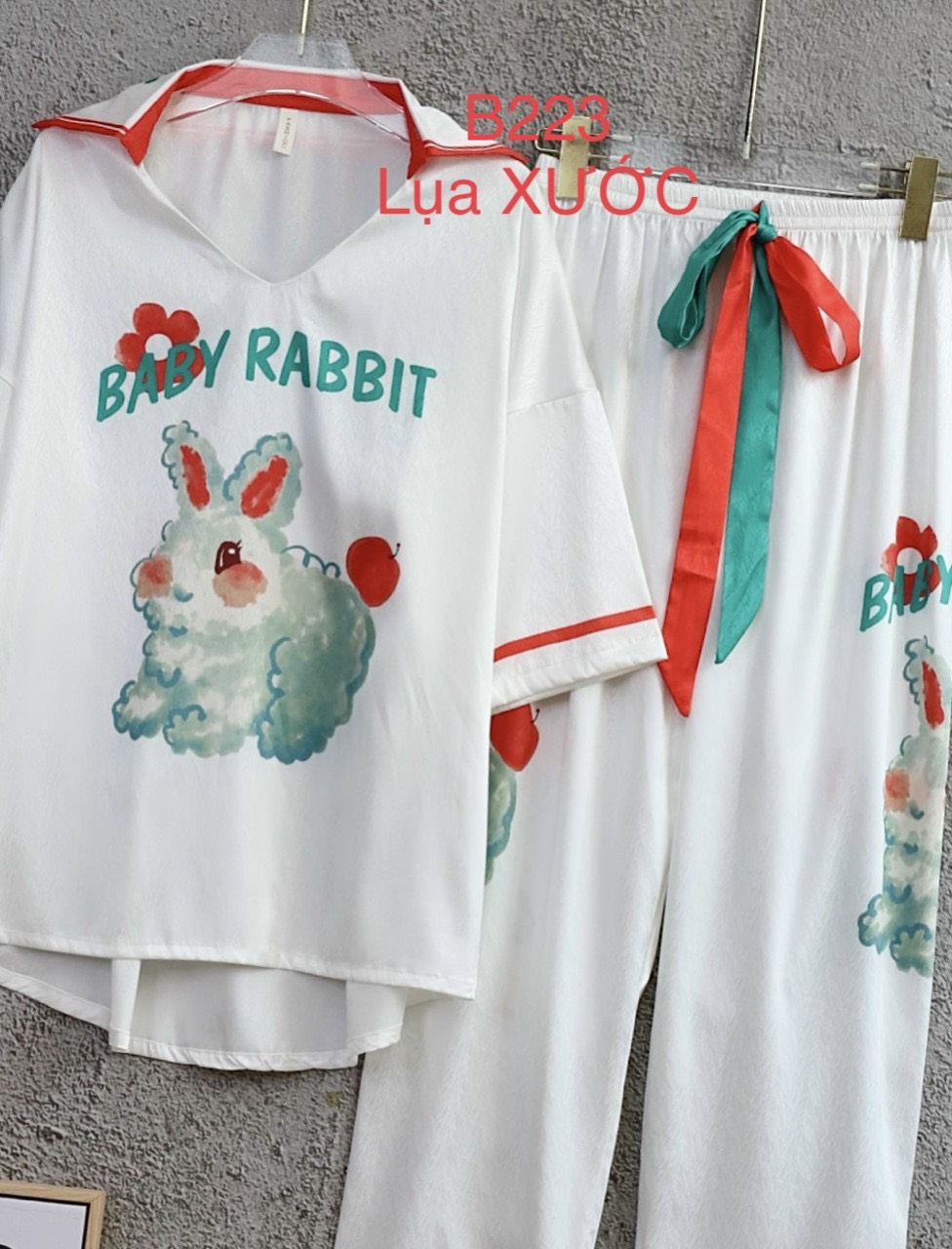 Chất liệu lụa xước cao cấp đồ ngủ bộ dài tay dài hoạ tiết in cute đáng yêu cho bạn sự tự tin thoải mái khi mặc. Màu sắc: da, xanh.
