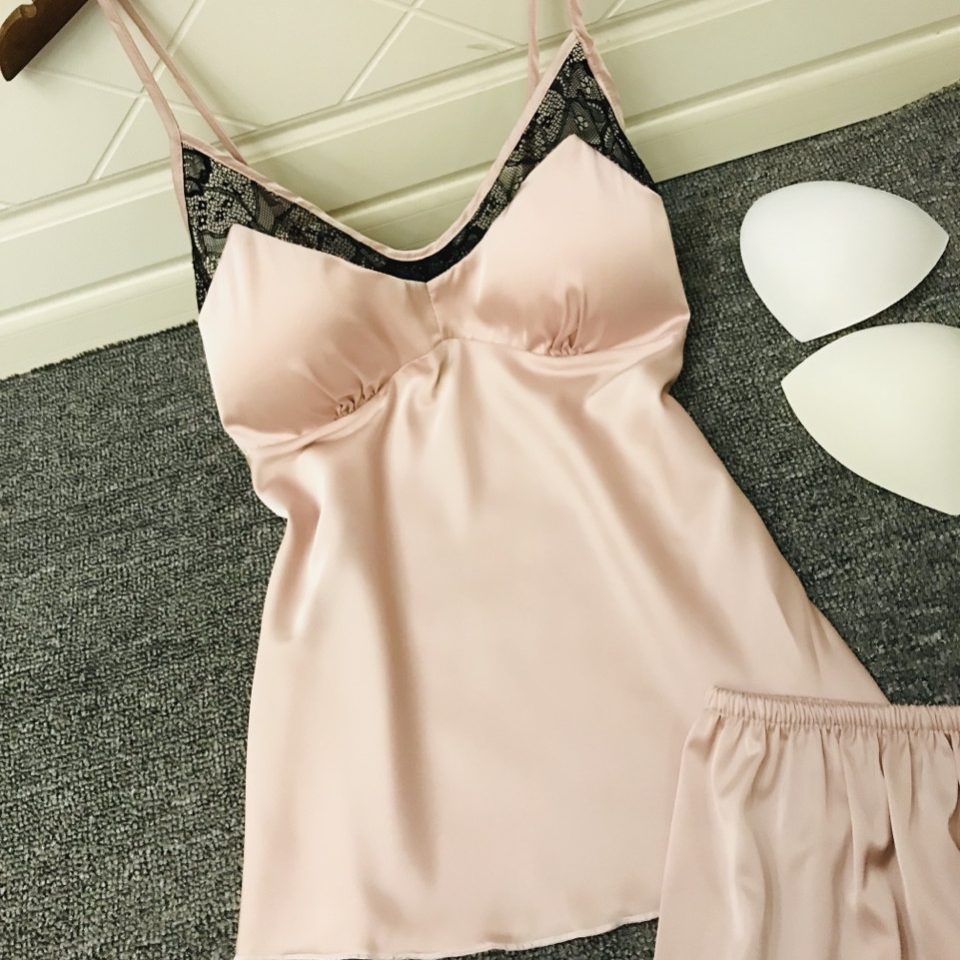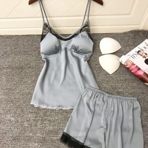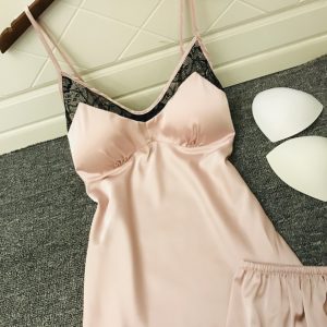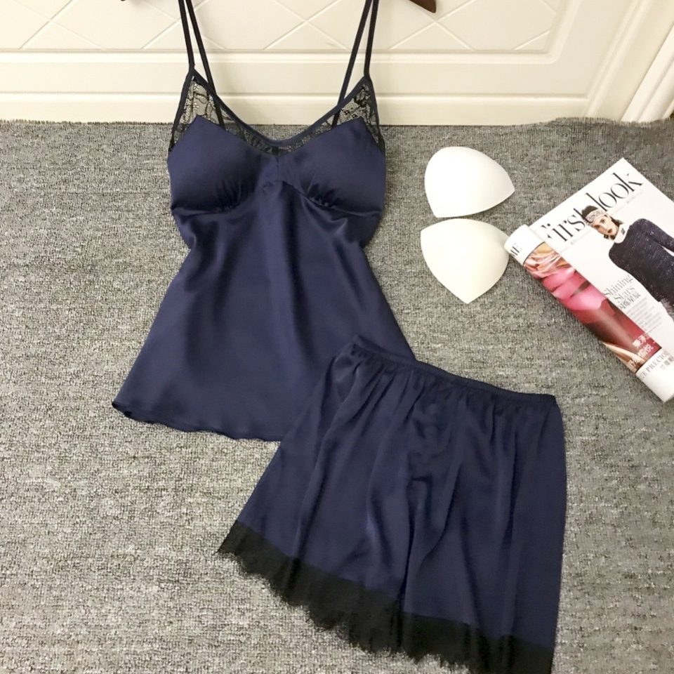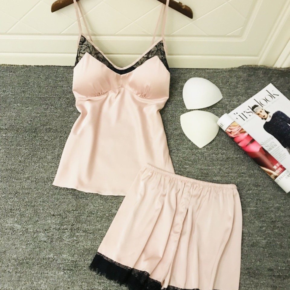 Hình ảnh chi tiết Đồ ngủ bộ phi bóng viền ren cao cấp 4 màu
