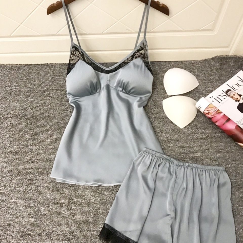 Đồ ngủ bộ chất liệu phi bóng viền ren cao cấp kèm mút có thể tháo rời. Thiết kế kiểu dáng hiện đại sang trọng không những mang đến cho người mặc phong cách lịch sự tao nhã mà còn một vẻ gợi cảm sexy khó cưỡng. Bốn màu: đỏ, xanh, hồng, xám (freesize 40-55kg)