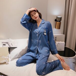 Chất liệu lụa cao cấp mềm mịn mặc cực thích, kiểu dáng áo dài tay quần dài họa tiết in cực cute thích hợp cho bạn gái trẻ mang lại cho bạn sự thoải mái khi ở nhà.
