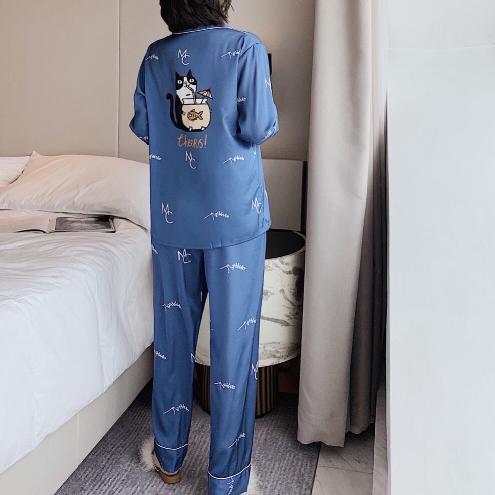 Hình ảnh chi tiết Đồ ngủ bộ pijama dài lụa cao cấp họa tiết in siêu cute