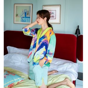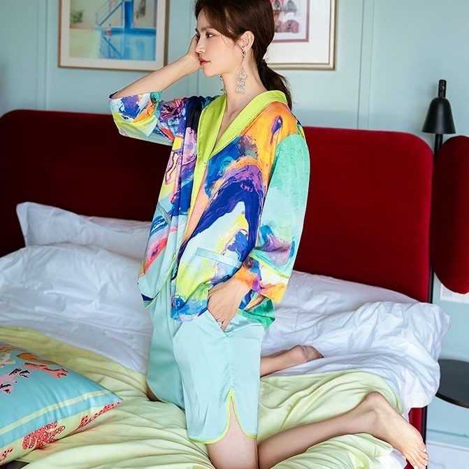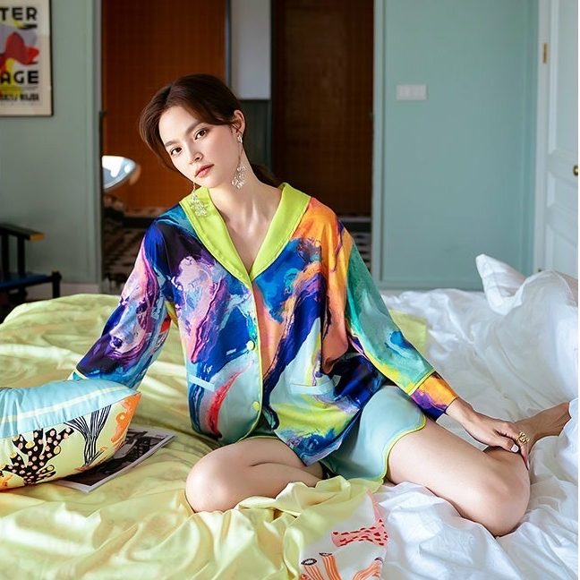 Chất liệu lụa cao cấp màu sắc tươi trẻ kiểu dáng sang trọng cho bạn sự thoải mái và tự tin khi ở nhà.