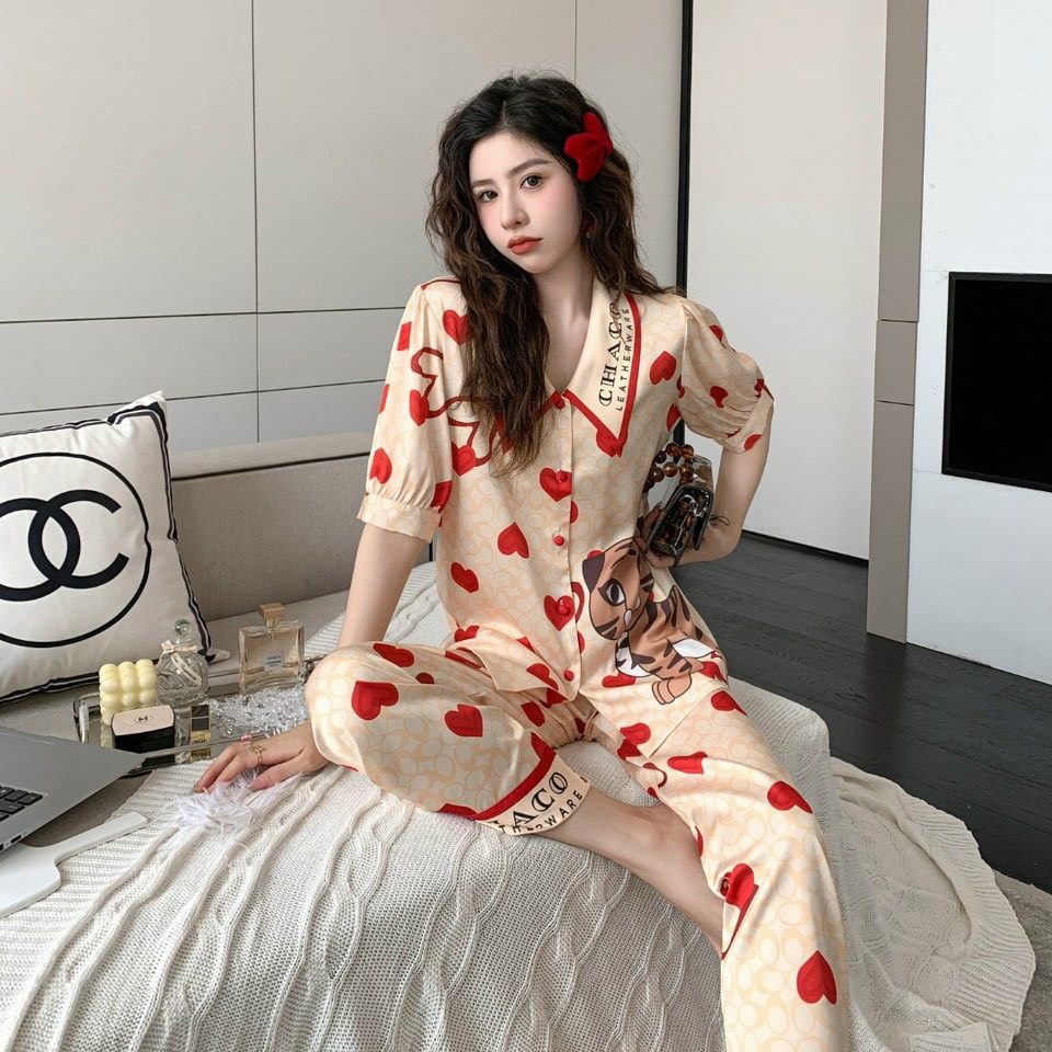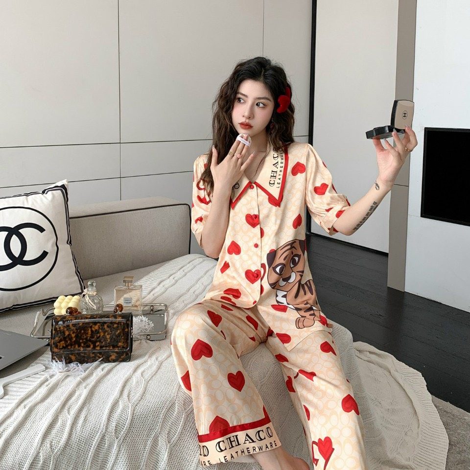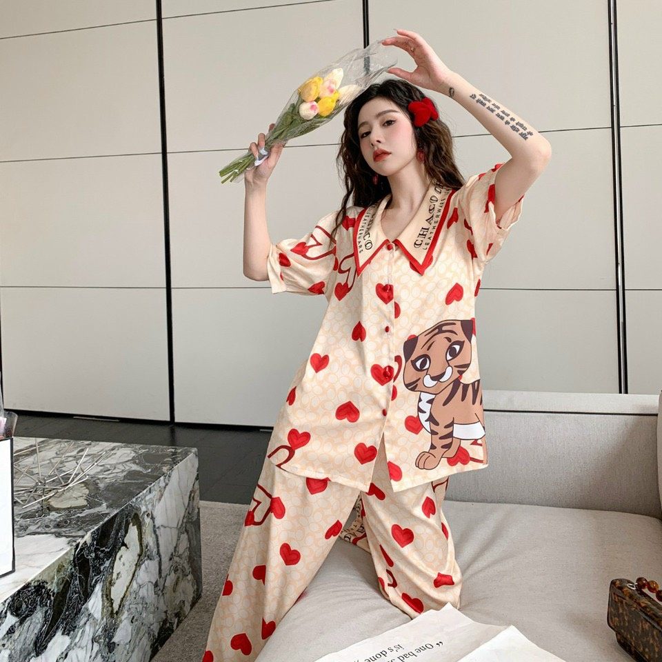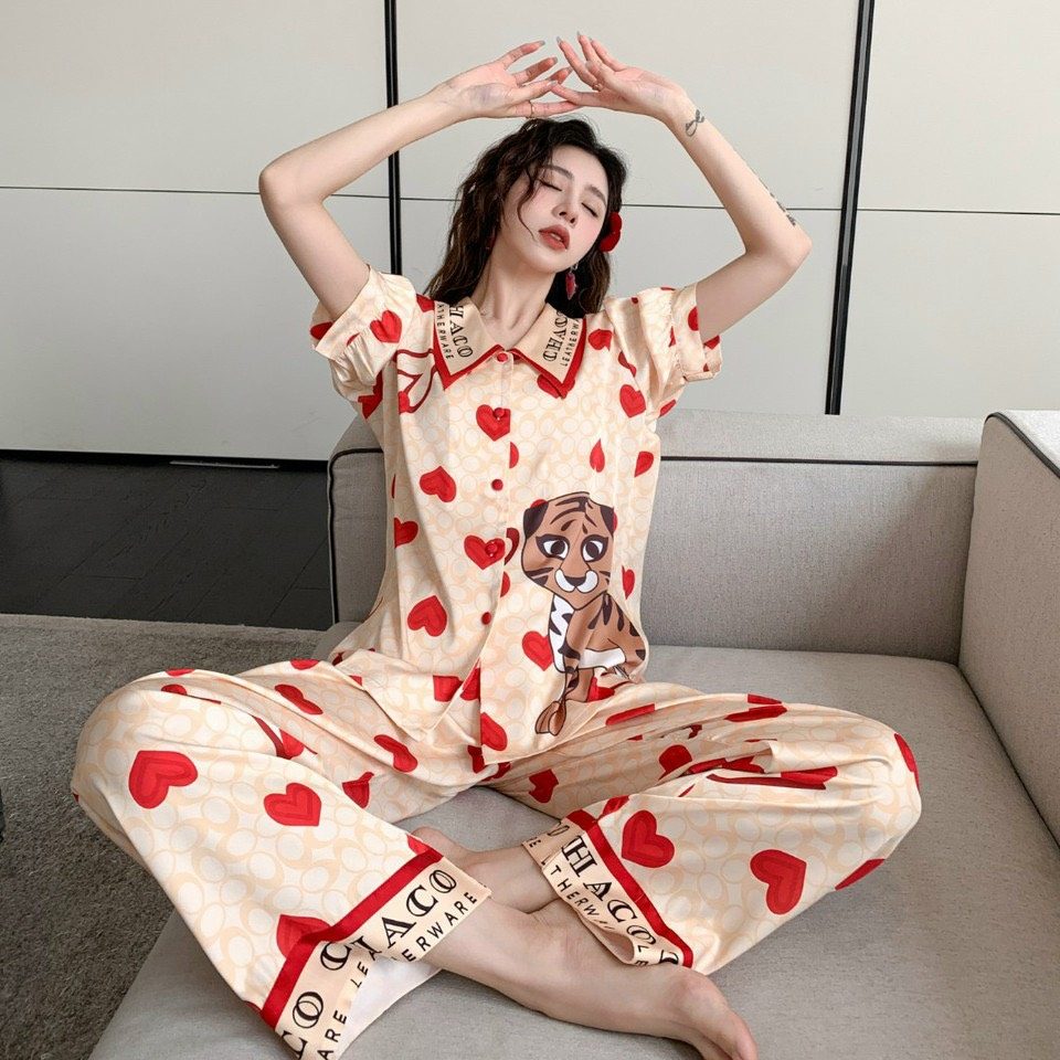 Chất liệu vải cao cấp mềm mịn hoạ tiết in sắc sảo kiểu dáng quần dài tay ngắn cho nàng sự thoải mái tự tin khi mặc.