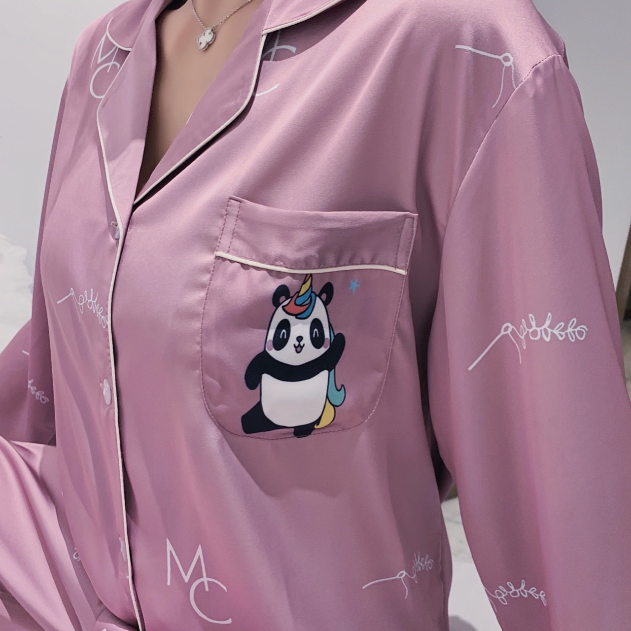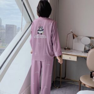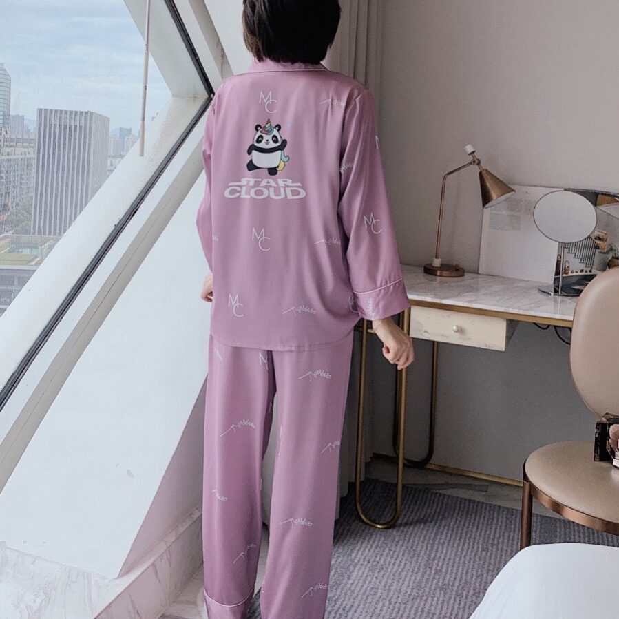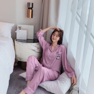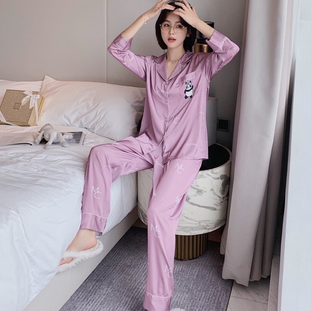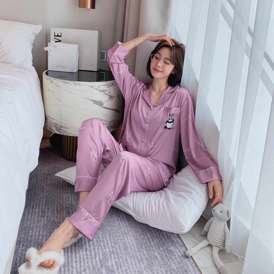 Đồ ngủ bộ kiểu dáng dài tay quần dài chất liệu lụa cao cấp mềm mịn họa tiết in cực dễ thương, mang lại cho bạn gái sự thoải mái sang trọng quý phái.