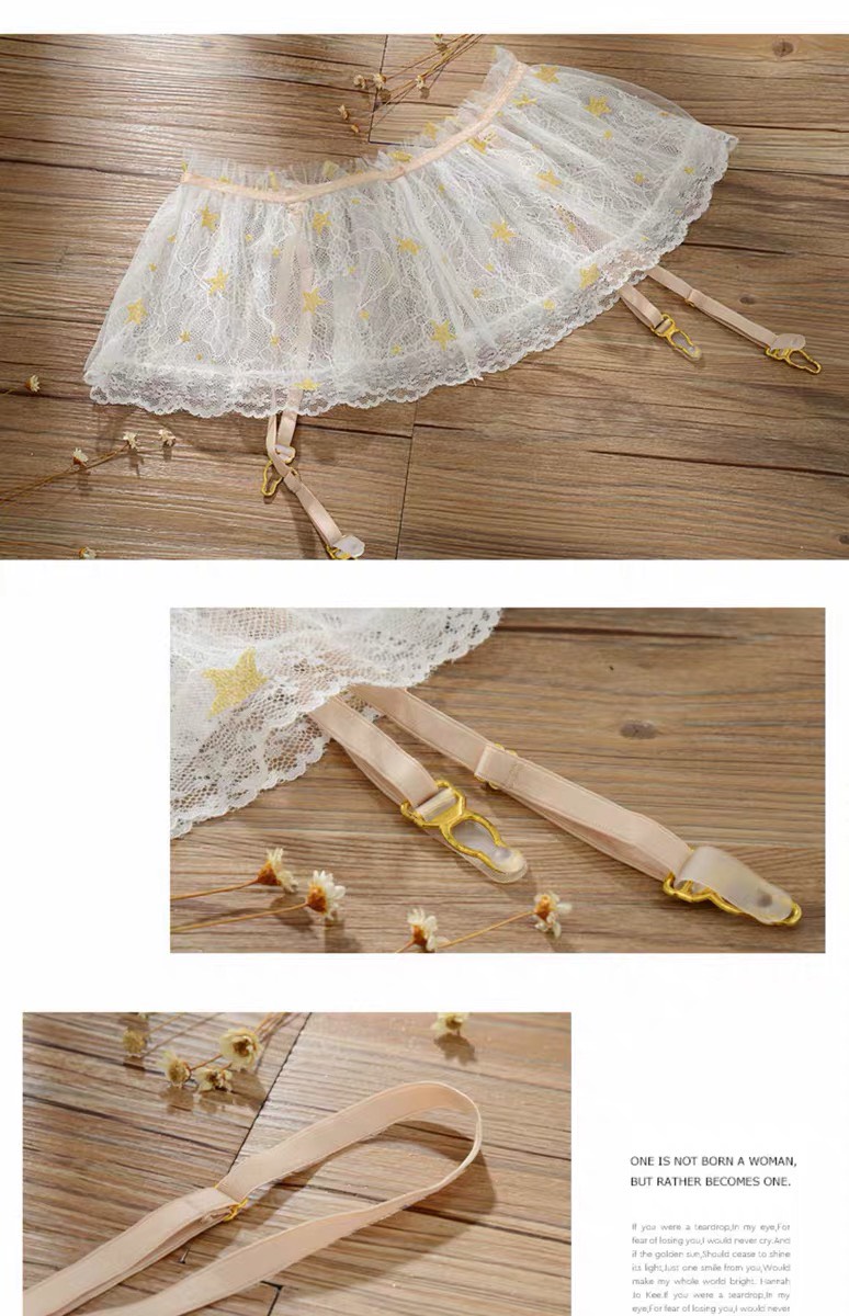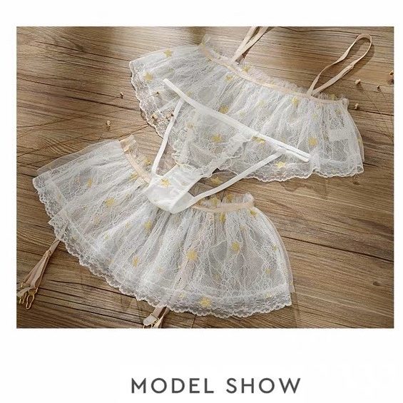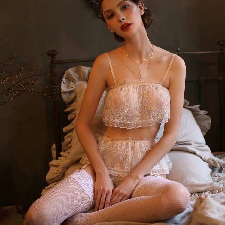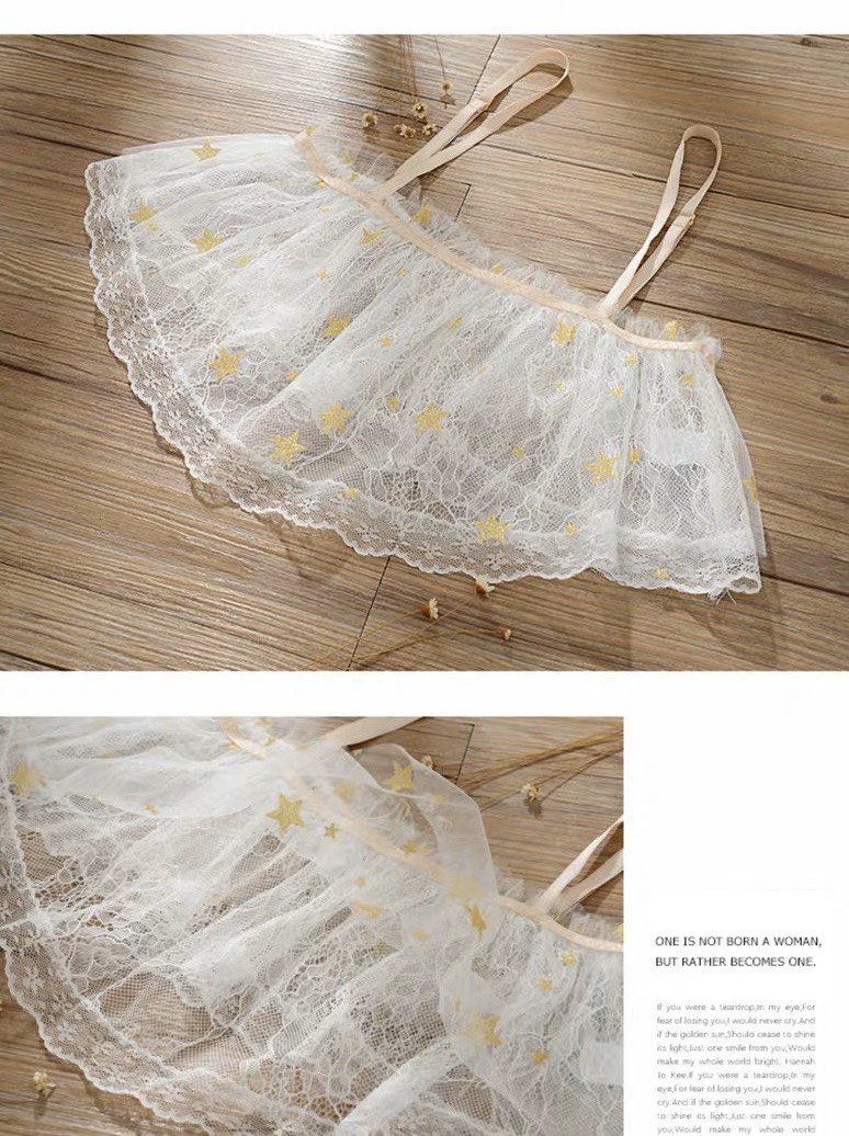 Đồ ngủ bộ ren mềm mịn trong suốt họa tiết sao lấp lánh sang trọng, kiểu dáng quần kẹp vớ sexy gợi cảm mang lại cho bạn gái vẻ đẹp hiện đại gợi cảm.